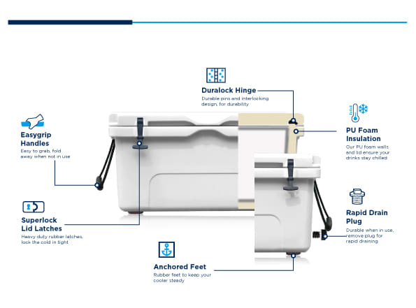 Keep your drinks chilled, and your branding seen with our great new 35L cooler box. Made from quality polyethylene, these coolers are not only durable, but come with superior insulation, to keep your drinks chilled for days on end. Ice cubes stay chilled for up to 3 days. Complete with a range of accessories, and print options, this is the ultimate high quality cooler for this summer.