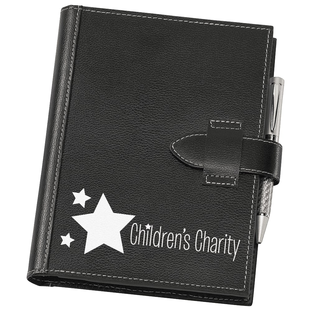 Made from pebble grain bonded leather with white stitching and supplied with an 80-page white-lined pad.