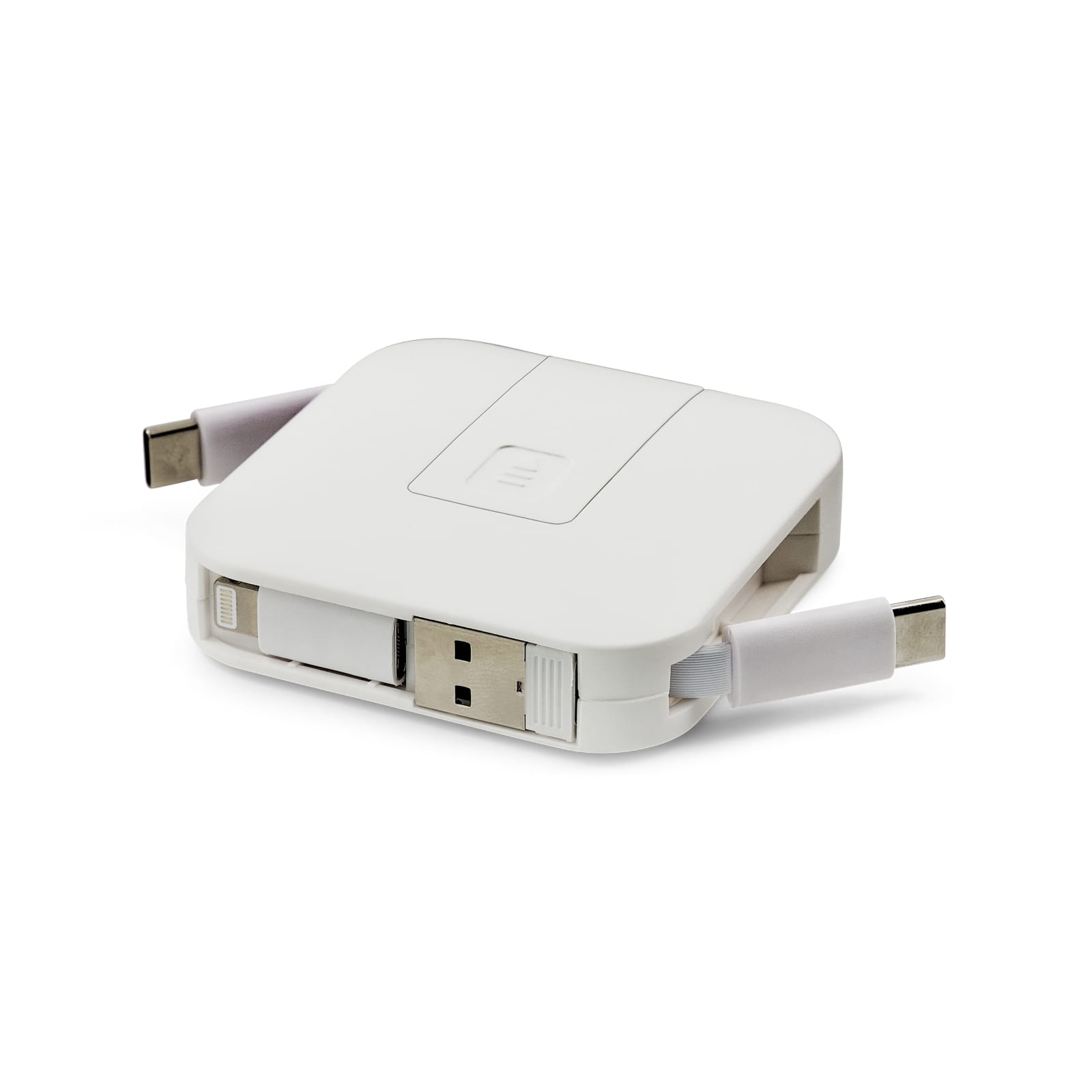 The Altona Retractable Cable combines smart design with everyday practicality, making it a must-have accessory for charging and data transfer on the go. The 1-metre USB-C to USB-C flat cable retracts neatly into a compact square case, keeping your workspace or travel bag organised. The base cleverly doubles as an adjustable phone stand with incremental angle settings to suit any device — with or without a case. For added versatility, the Altona also includes Lightning and USB Type-A connectors, making it compatible with a wide range of devices. The cable supports fast charging and data transfer with a power capacity of 3A at up to 20V, delivering up to 60W. Finished in clean white, it’s the perfect blend of form and function for tech lovers and everyday users alike.