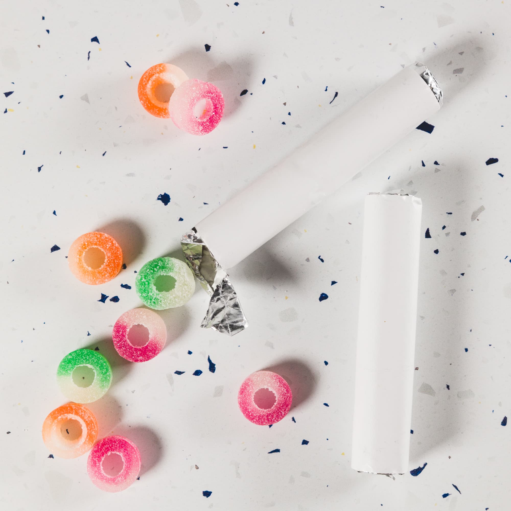| Materials | Jelly fruit lollies, foil, paper label |