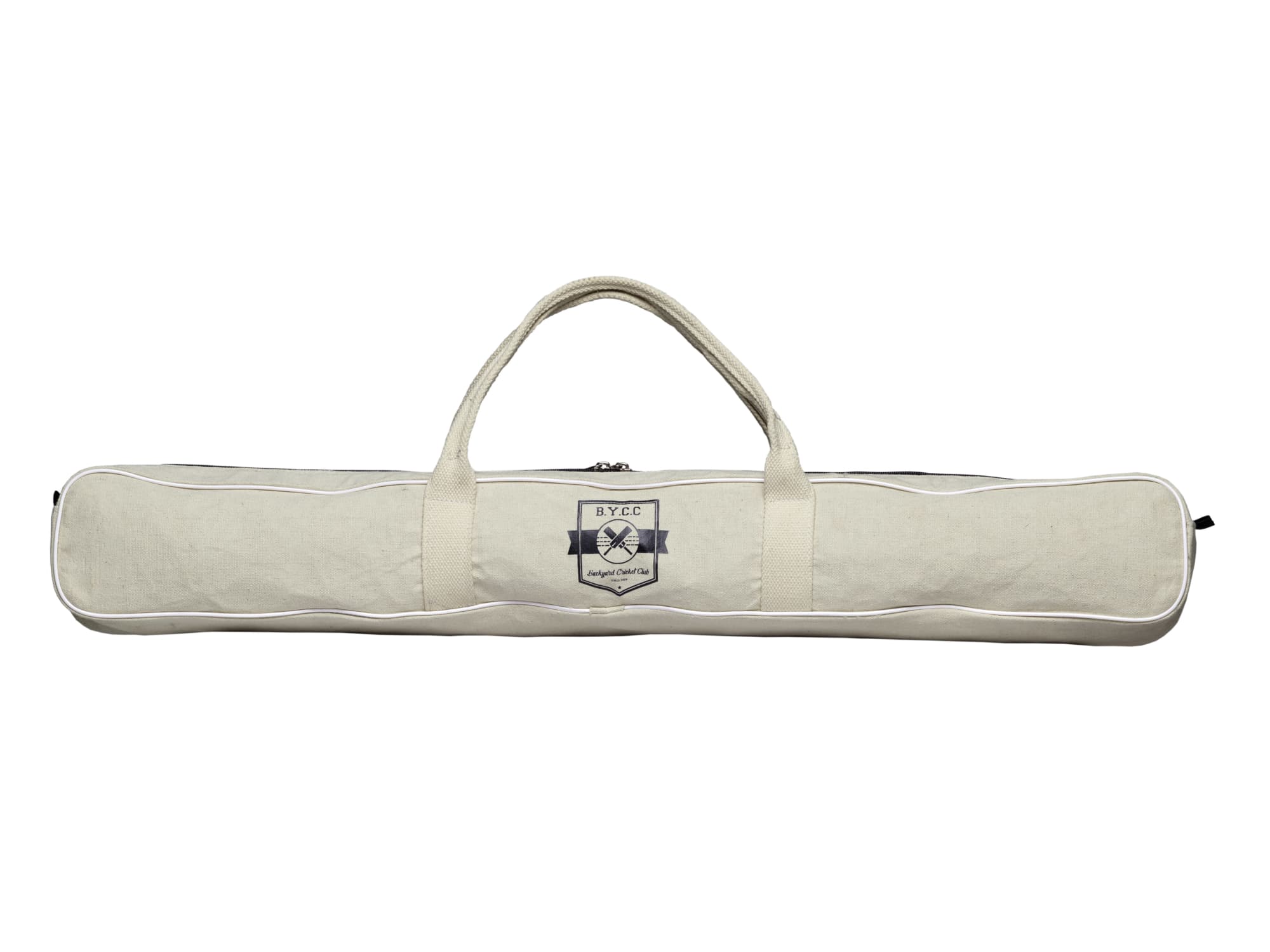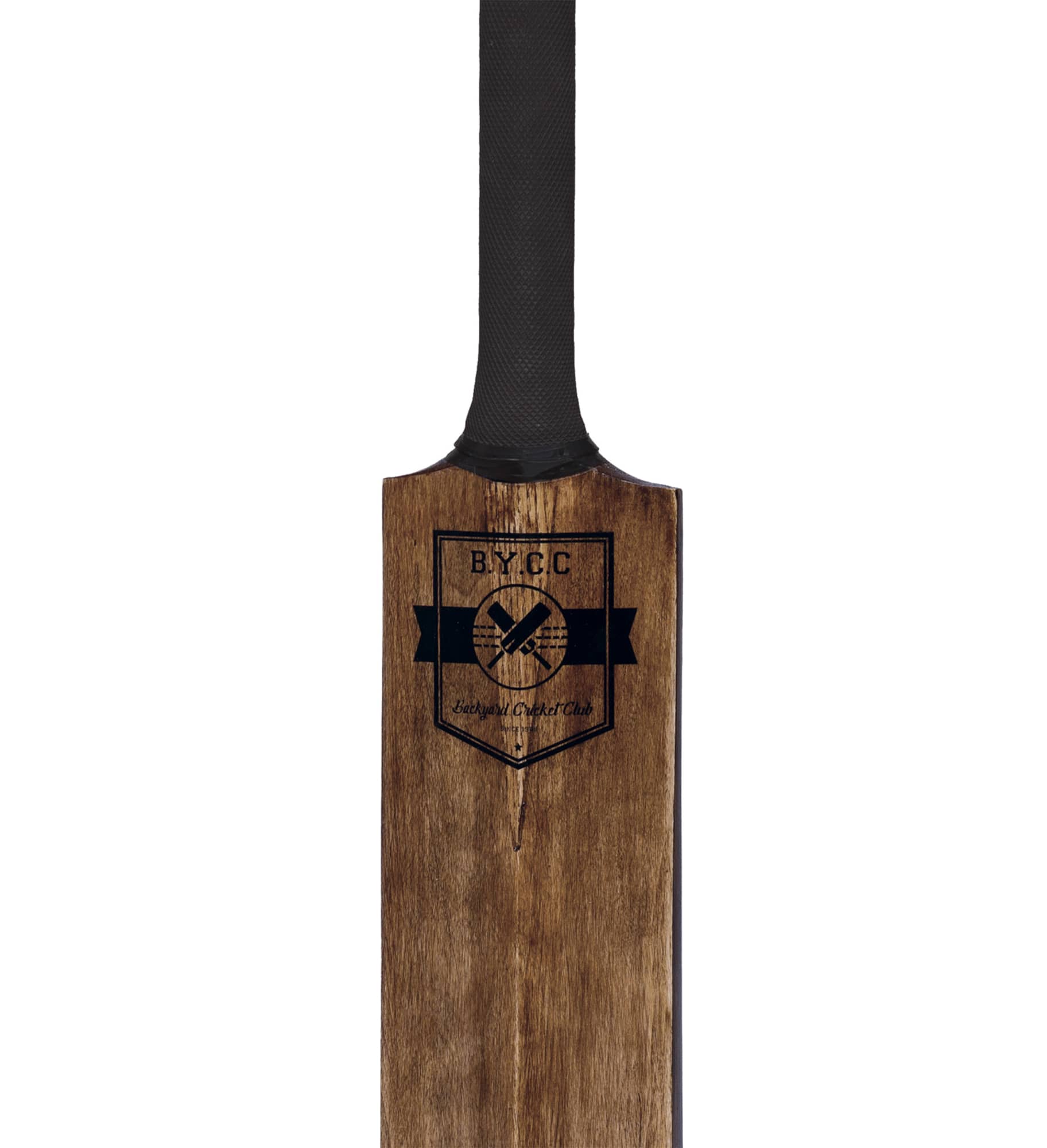 8-pcs Vintage inspired antique natural wood grain backyard cricket set|Set includes: SH size cricket bat (82cm), 4 x wickets (69cm H x 2.5cm dia.), 2 x bails (9cm L x 2.5cm Dia.), red semi soft cricket ball (8cm Dia.)|Supplied: in a BYCC natural canvas carry bag with two carry handles