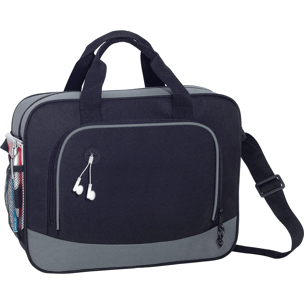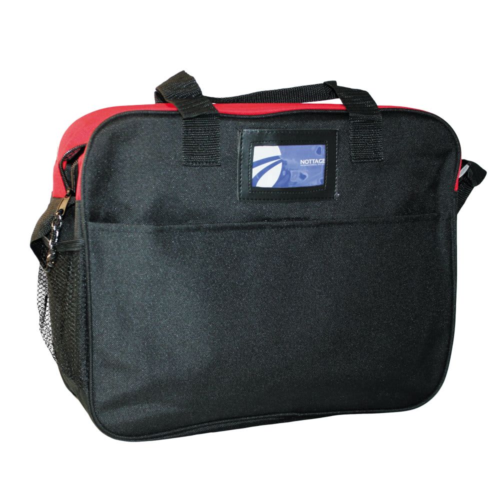 Zippered main compartment with double 16 inch reinforced top carry handles Zippered front pocket with earbud port. Open-top back compartment. Zippered side pocket. Side mesh accessory pocket. Available in 3 colours.