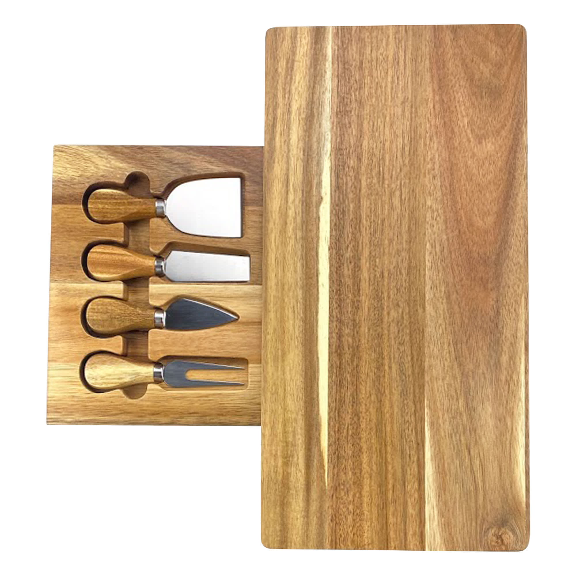 Barsa Cheeseboard and Knife Set is crafted from premium Acacia wood it has a draw to hold a set of 3 cheese knives and a fork is the ultimate indulgent gift for any cheese lovers to celebrate their special days. Acacia wood is one of the most robust wood species in the world and is extremely resistant each board is individually unique and they all have their own markings non of two boards will be engraved with same outcome. Handwash is recommended to maximise the life of cheeseboard. It is presented in a premium book style matt black cardboard gift box.
