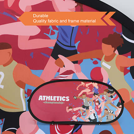 Our Pop Up Banners are lightweight and portable for both indoor and outdoor activities. They can be easily set up in seconds and are great for brand exposure in sporting events during breaks or play. Strong but lightweight flexible frame twists and folds into a compact circle carry bag. The foldable frame also makes them safe to use on sports fields, since they present lower risk of injury to the players.