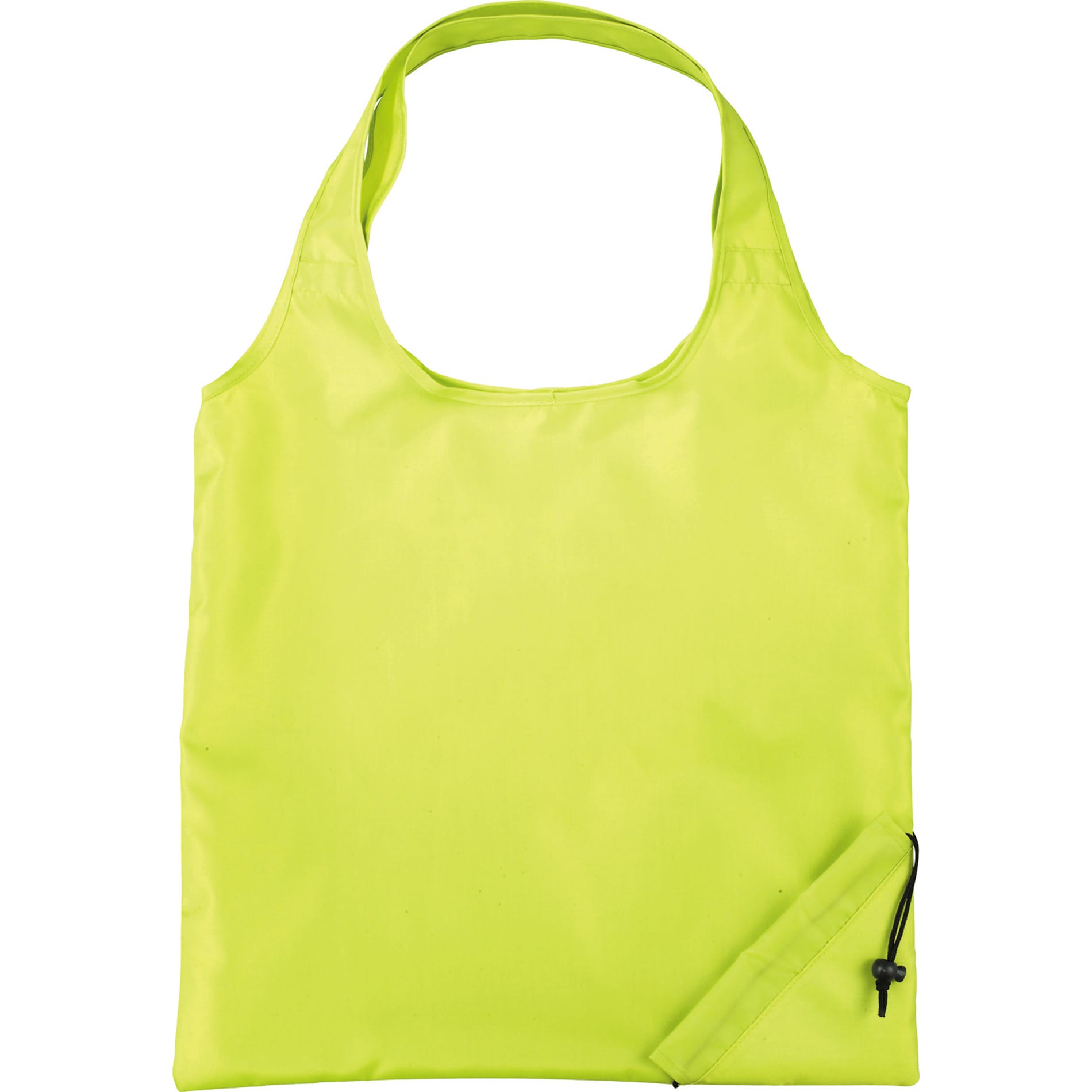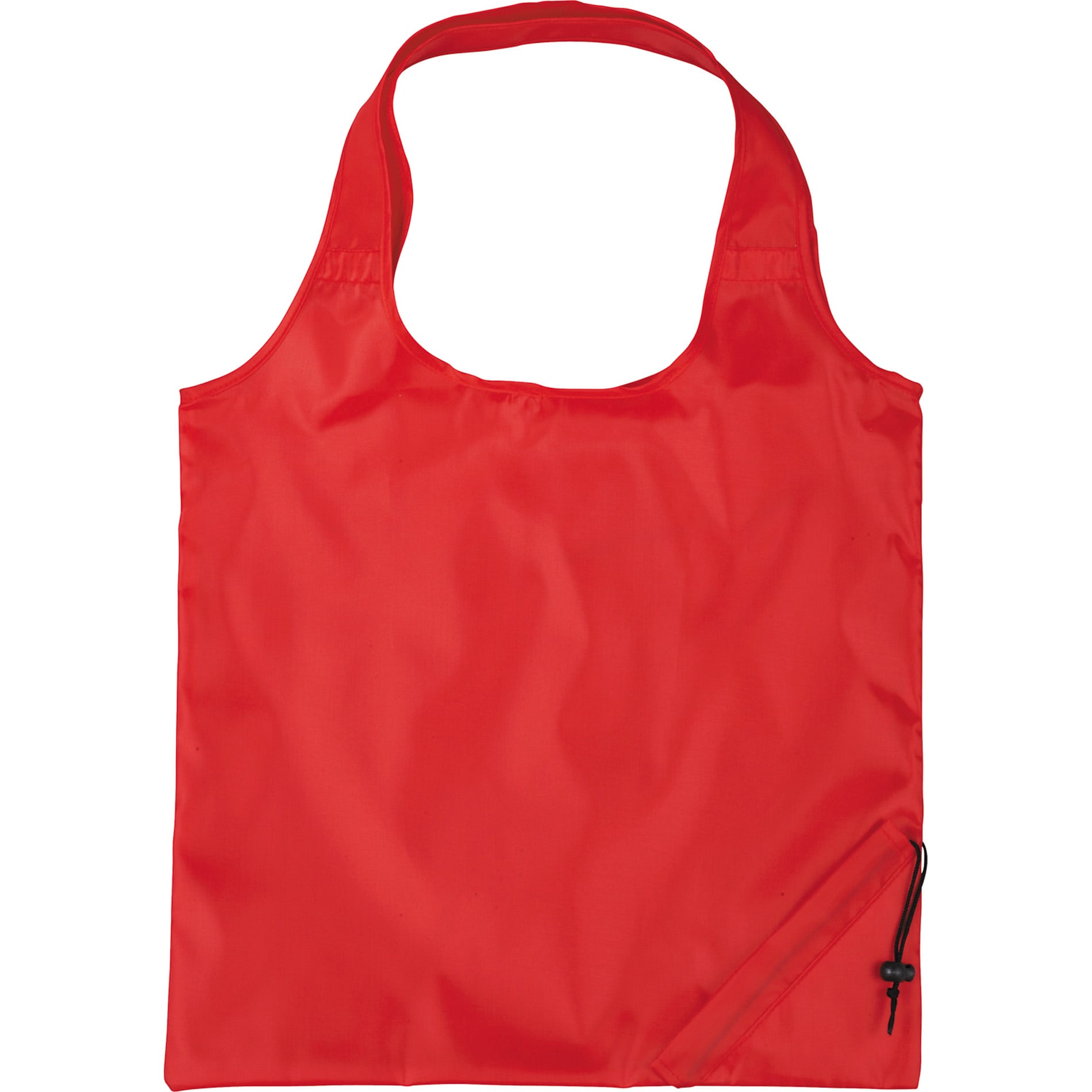 Open main compartment with double handles. Unique fold-away function gathers into corner with drawstring closure.
