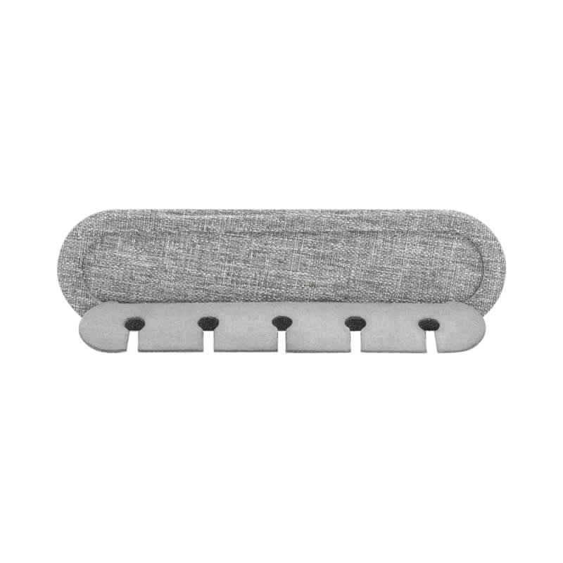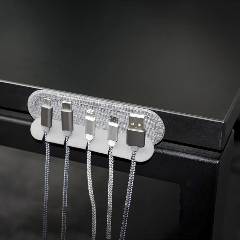 Get your cables organised! Do you feel tired of all that clutter and messy cables and cords around your desk, TV, computer or cell phone? If you are looking for a simple, neat and tidy method to de-clutter, Cabledock will help you stay organised. Compatible with all charging and peripheral cables up to 6 mm, Cabledock can be fixed on any clean and smooth surface and folds flat when not use. Material: RPET, Recycled Polyester
