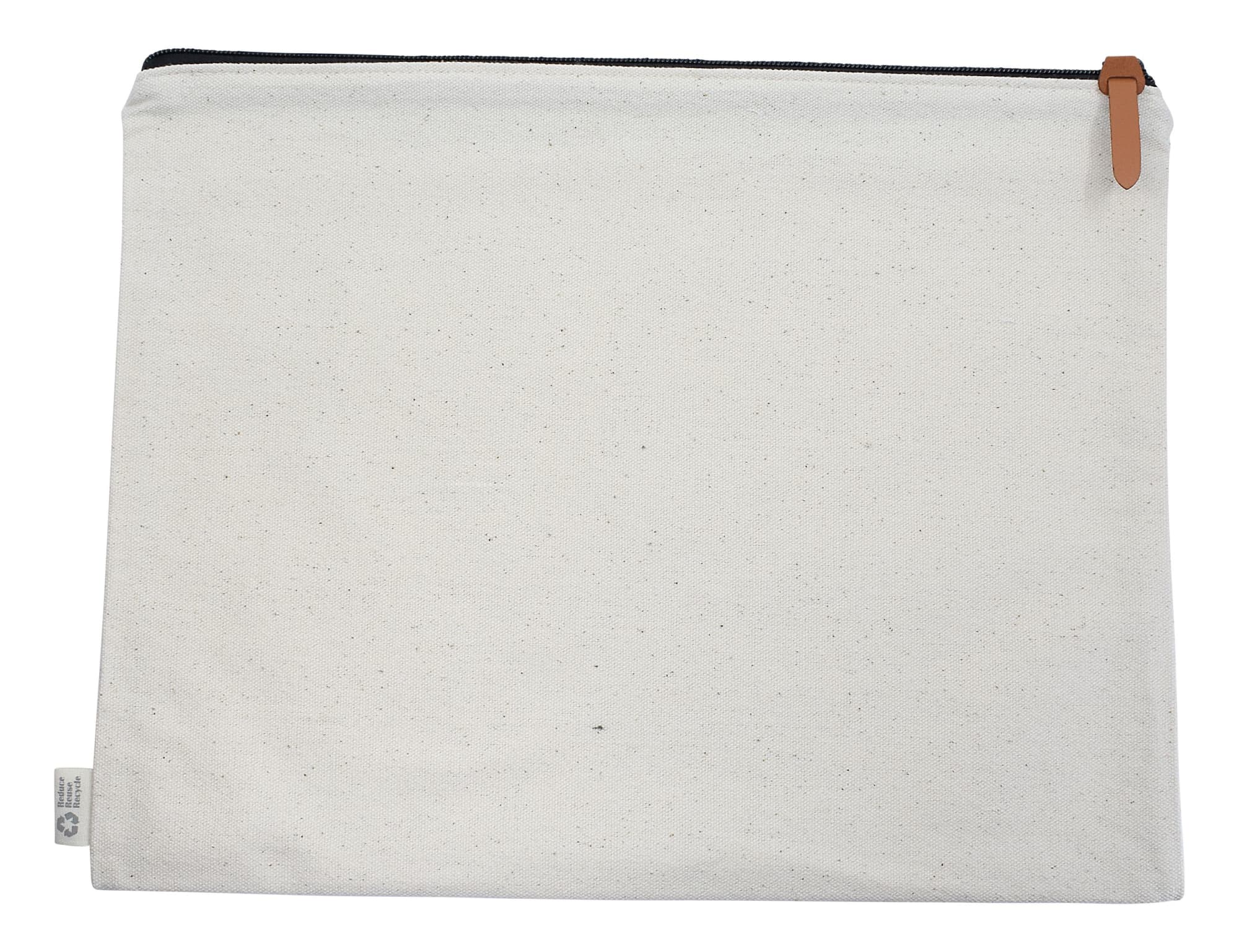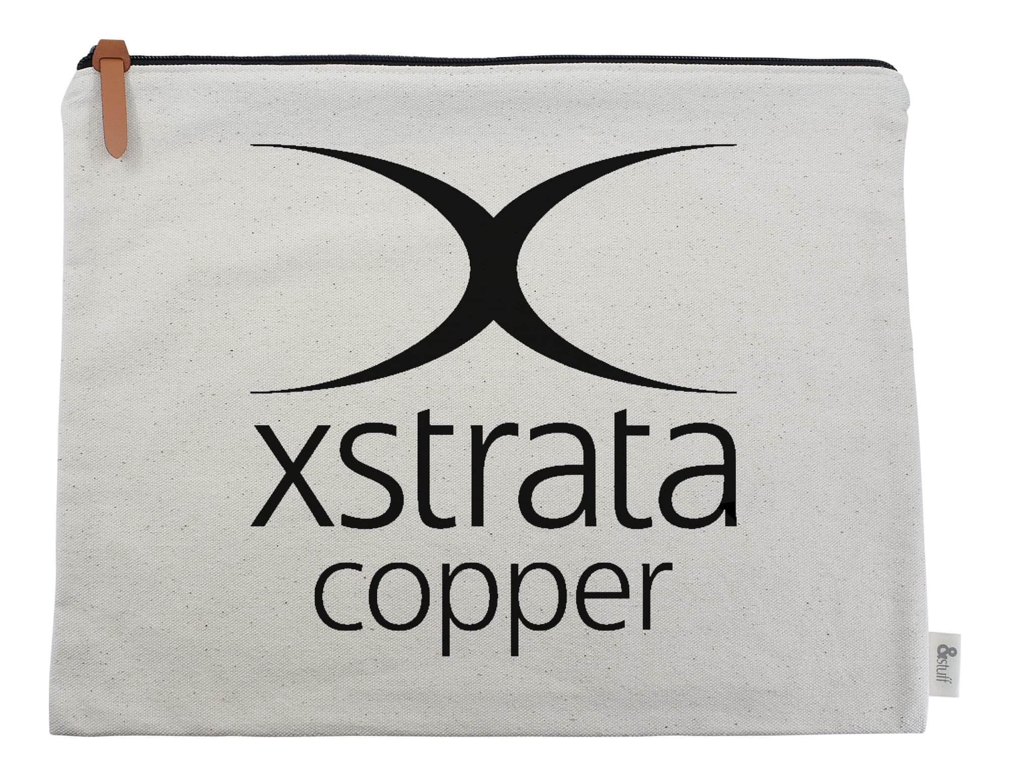 Options – select either: (1) natural or black coloured zip, (2) natural cotton zip puller or leatherette zip puller, (3) cotton handle, (4) debossed logo onto the leatherette badge or screen printed directly onto the calico material (additional charges apply for some of these options – see below).