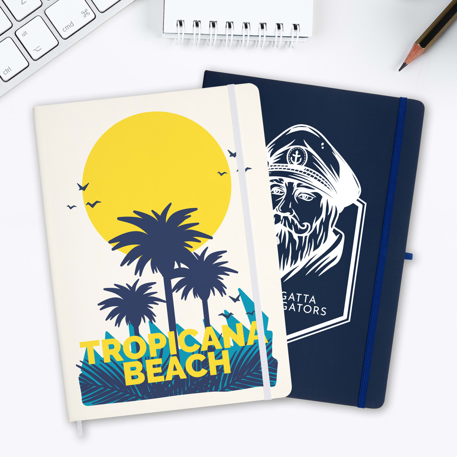 | Print Areas | Digital Print: Front of Notebook - 190 x 270mm (LxH), Back of Notebook - 160 x 230mm (LxH), Sleeve - See Line Drawing (Horizontal); Screenprint: Front/Back of Notebook - 140 x 240mm (LxH); Digital Label: Inside Front Cover - 93.1 x 99.1mm (LxW) |