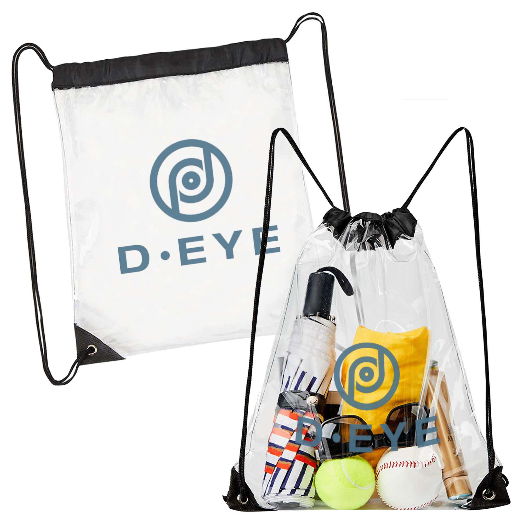 25C clear PVC drawstring backpack polyester top edge. A perfect bag to meet security regulations for sporting events concerts races and more. This PVC bag is also a great bag for every day uses such as shopping beach and swimming.
