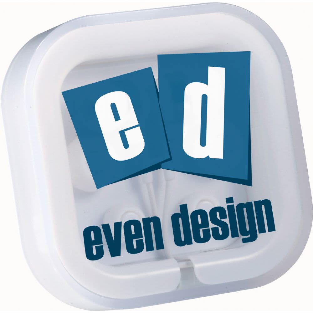 Use with any standard audio device. Includes three interchangeable soft rubber earbud covers. Plastic case with cable storage. Standard 3.5mm audio jack, 38-inch earbud cable. Media device not included.