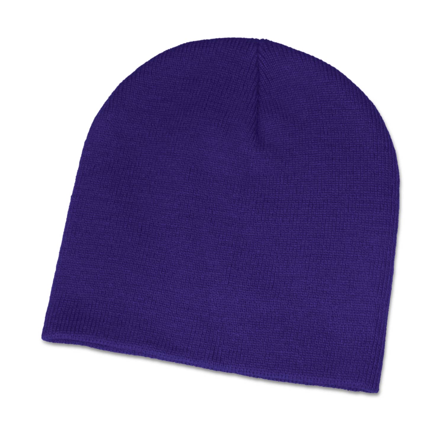 Warm close-fitting beanie knitted from acrylic yarn. Available in one size which will fit most people.