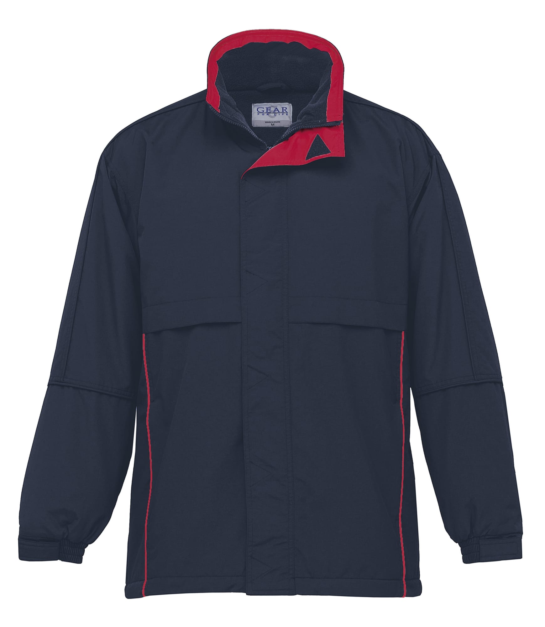 Nylon ottoman shell|Showerproof|Self coloured anti-pill polar fleece lining|Classic fit|Contrast stripe along top collar|contrast inside storm flap and contrast piping detailing|Full front zip with Velcro external storm flap|Two zippered front pockets|Draw cord on hem|Velcro adjustable elasticated cuffs|Hidden tuck away hood|Branding access pocket