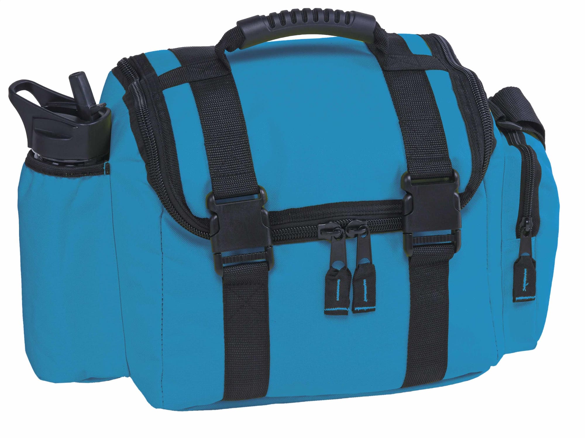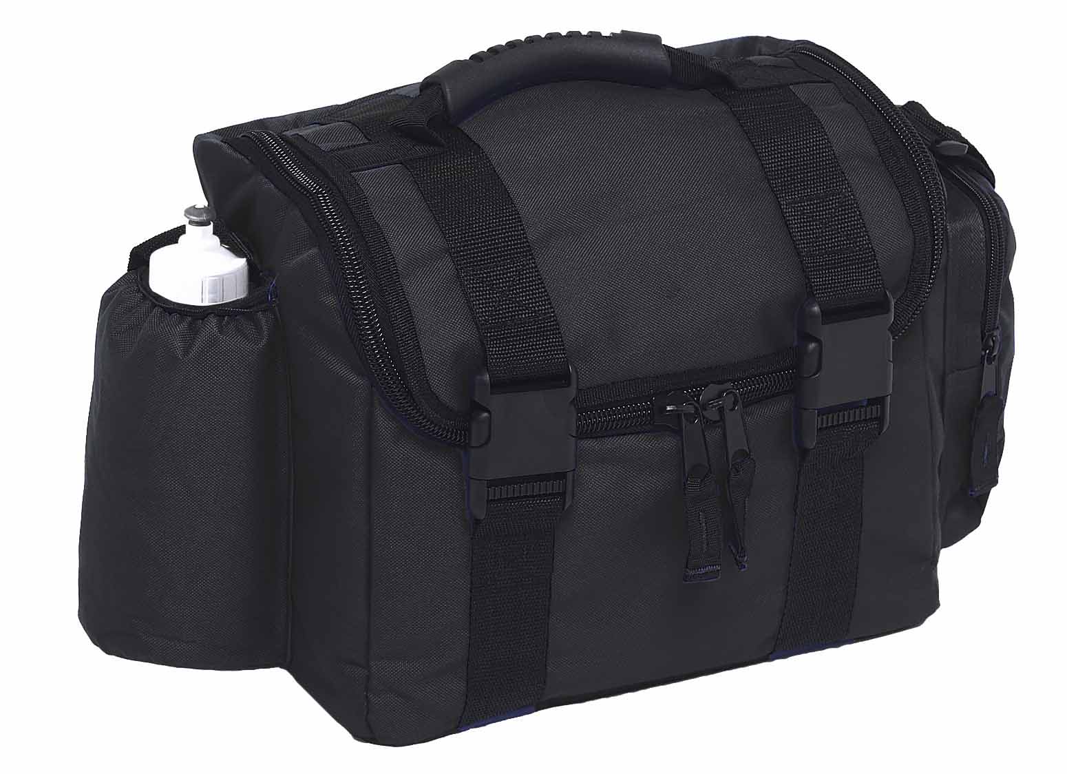 600D polyester with latex rubber backing|Insulated bottle pocket and main compartment (bottles shown not included)|U-shaped zippered opening to main compartment with double oversized zippers|Oversized quick release buckles|Moulded rubber quick grab handle|Adjustable shoulder strap|Heavy duty zippers and accessories|Rubber feet for added protection|Capacity: 15 Litres