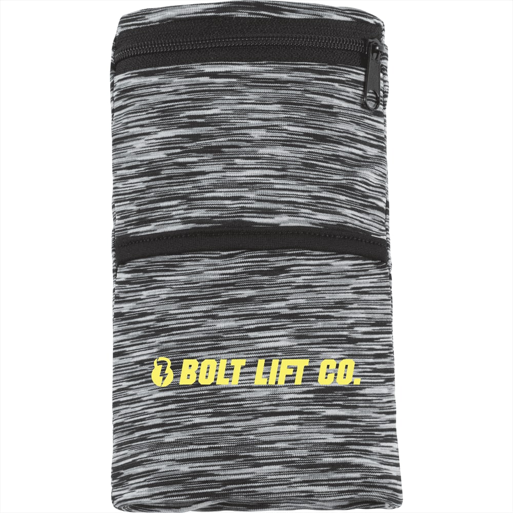 The cool breathable material dual storage areas and trendy heathered pattern makes this band perfect for any activity and event.