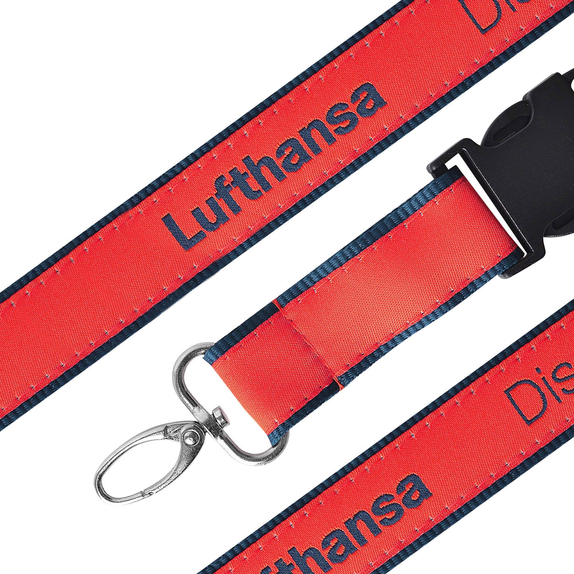 Our lanyard is a braided design woven into the fabric. The result is a durable product made of polyester. Because it has a solid second layer of finish, the end result is a detailed design which is not lost in the printing process.