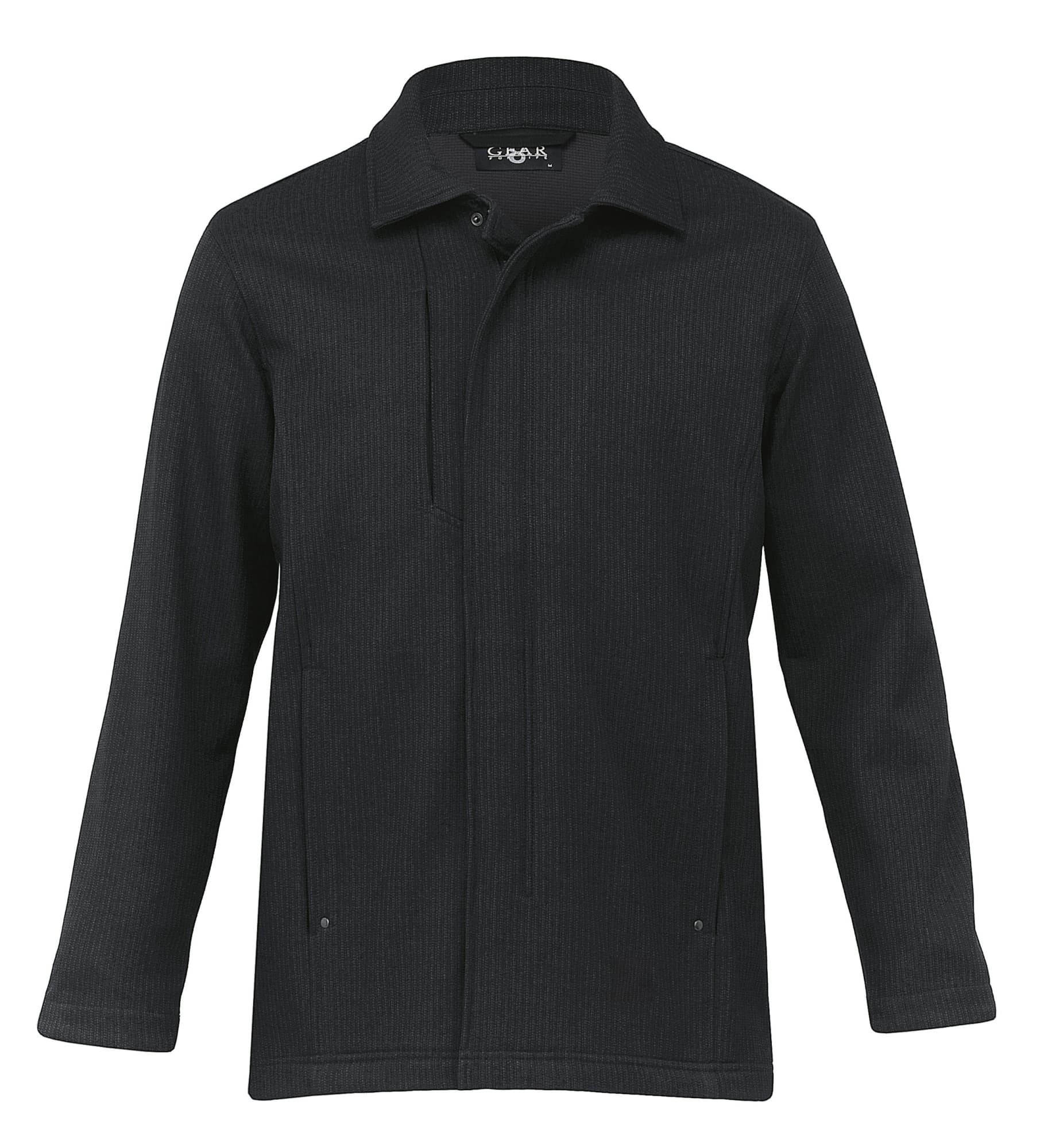100% polyester herringbone softshell bonded with anti-pill microfleece|Wind resistant|breathable|showerproof|water repellant rating 5000mm|Tapered fit|Two piece self fabric collar|Concealed zippered plaquet with hidden domes and external storm flap|Welt zippered chest pocket|Side panel detail|Top stitch detailing|Welt side pockets with MP3 exit and rivet detail