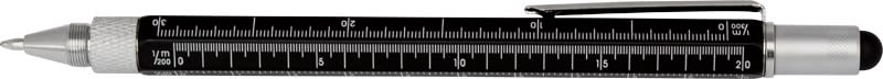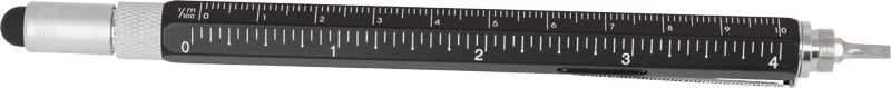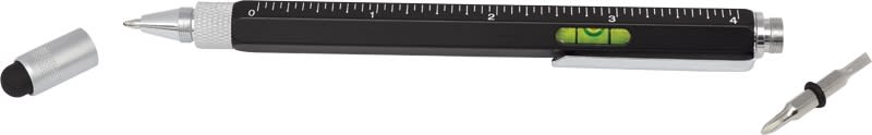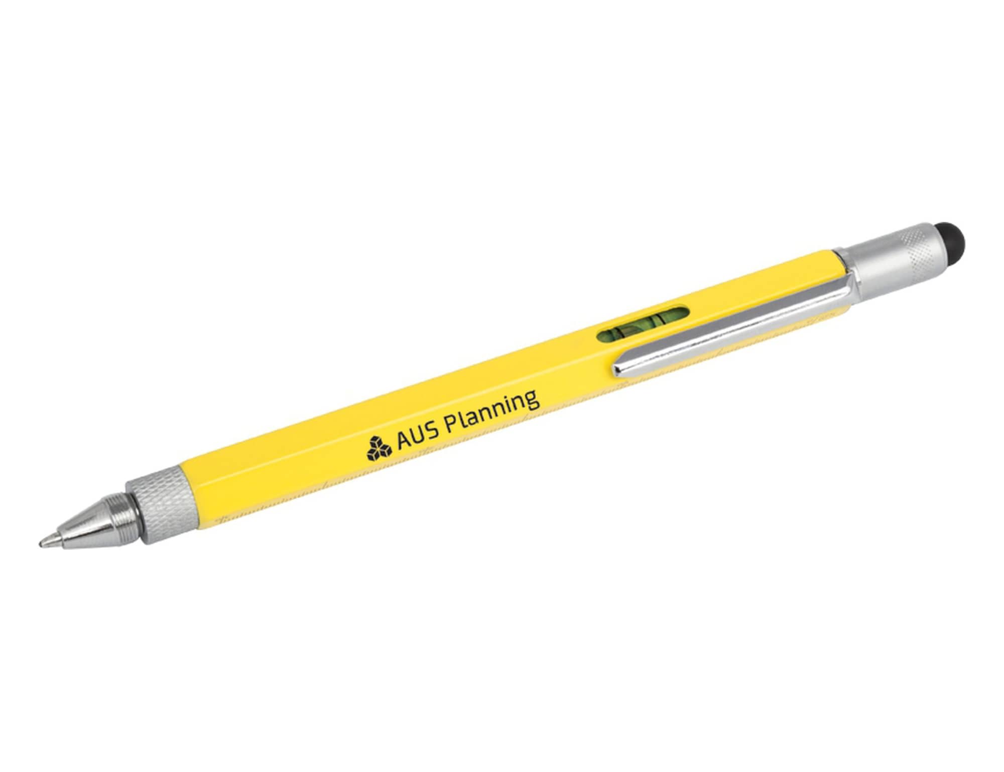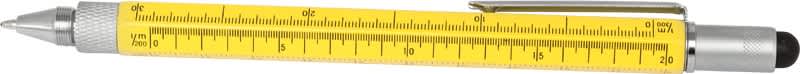 This top of the range metal 9-in-1 pocket tool incorporates a pen, stylus, 4 rulers, spirit level, phillips and flat edge screwdriver all in a useful stylus pen. Available in black, blue or yellow, all with silver trim.