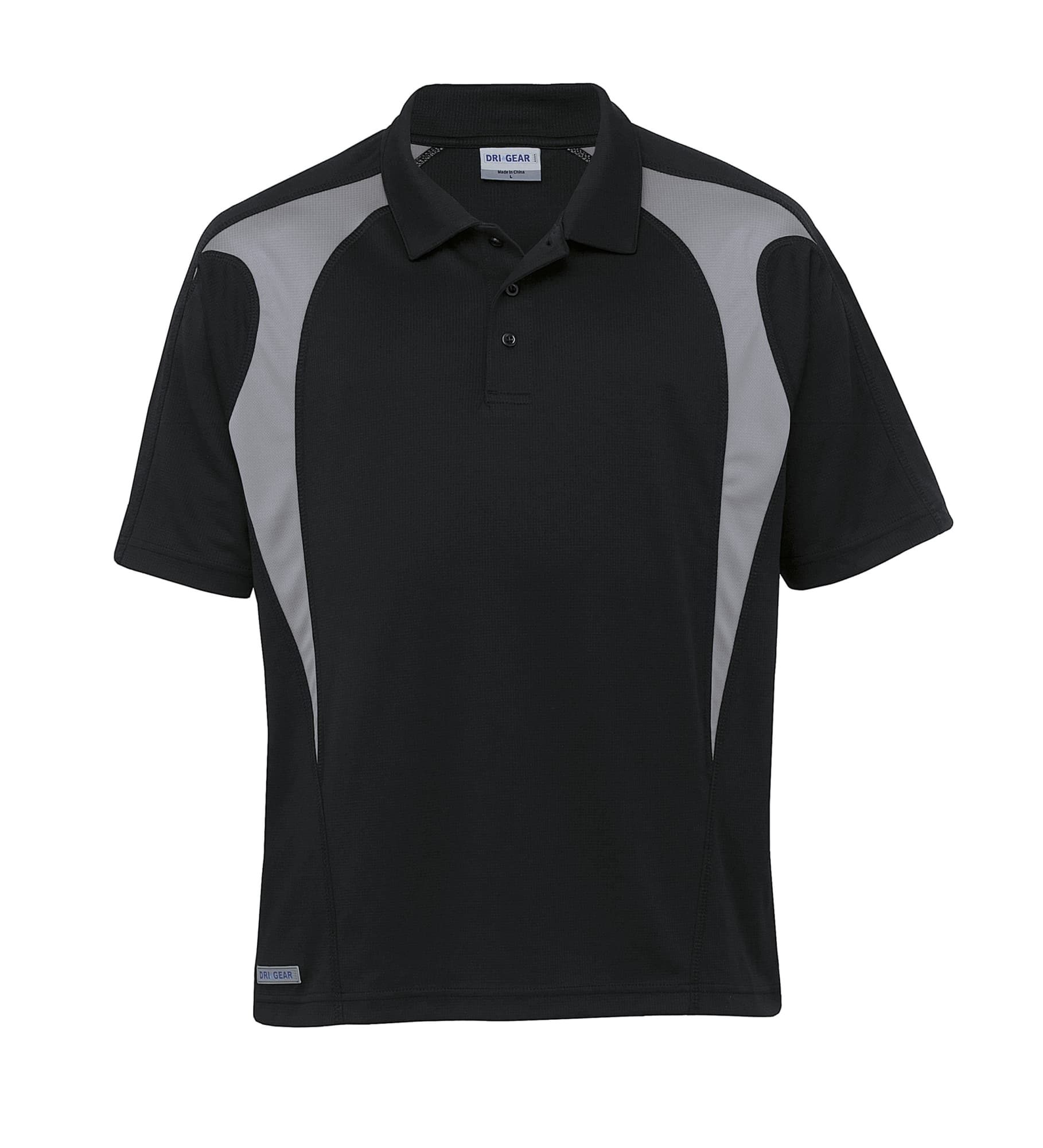 140gsm 100% micro poly square weave|Moisture wicking|UV protection|Classic fit|Contrast panels with cover stitch detailing|Raglan sleeve|Self fabric collar|Buttoned plaquet|DRI GEAR reflective badge on straight hem