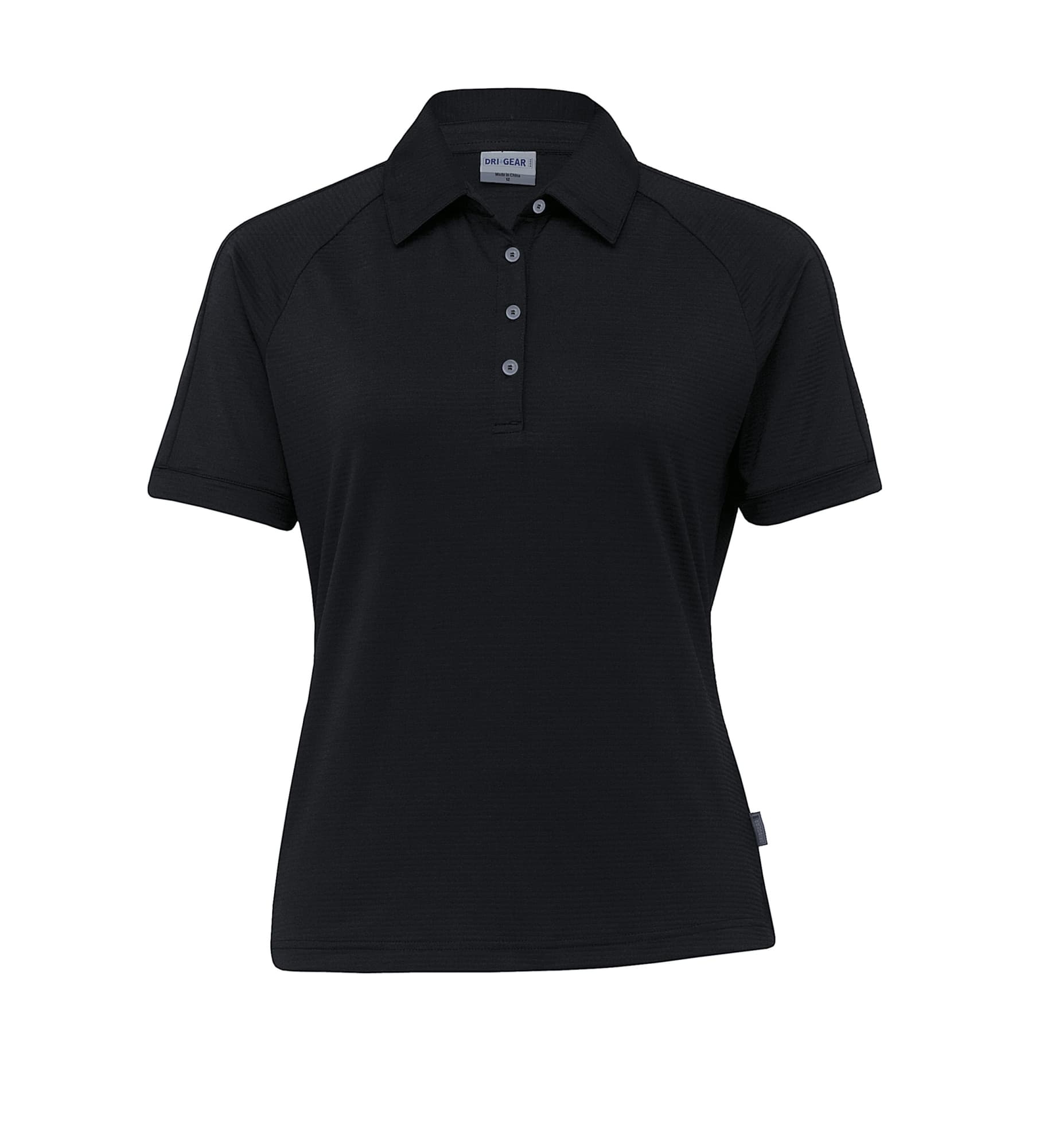 180gsm 96% polyester 4% elastane mechanical stretch ottoman|Moisture wicking|UV protection|Self fabric two piece collar|Raglan sleeve with cuff|Clear DRI GEAR buttons on plaquet|Side splits at hem|DRI GEAR side pip