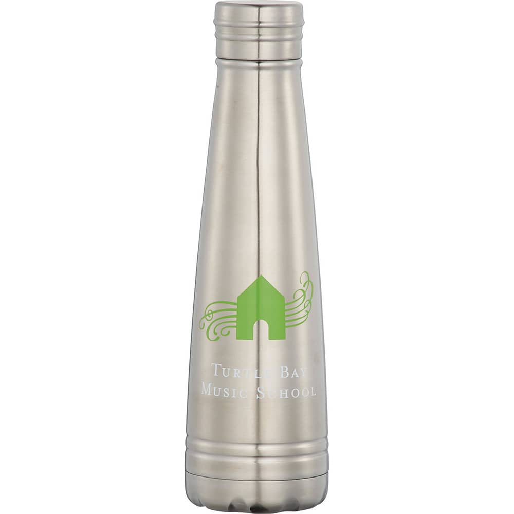 Sleek and stylish drink bottle is double wall 18/8 grade stainless steel with vacuum insulation. Available in 2 colours.