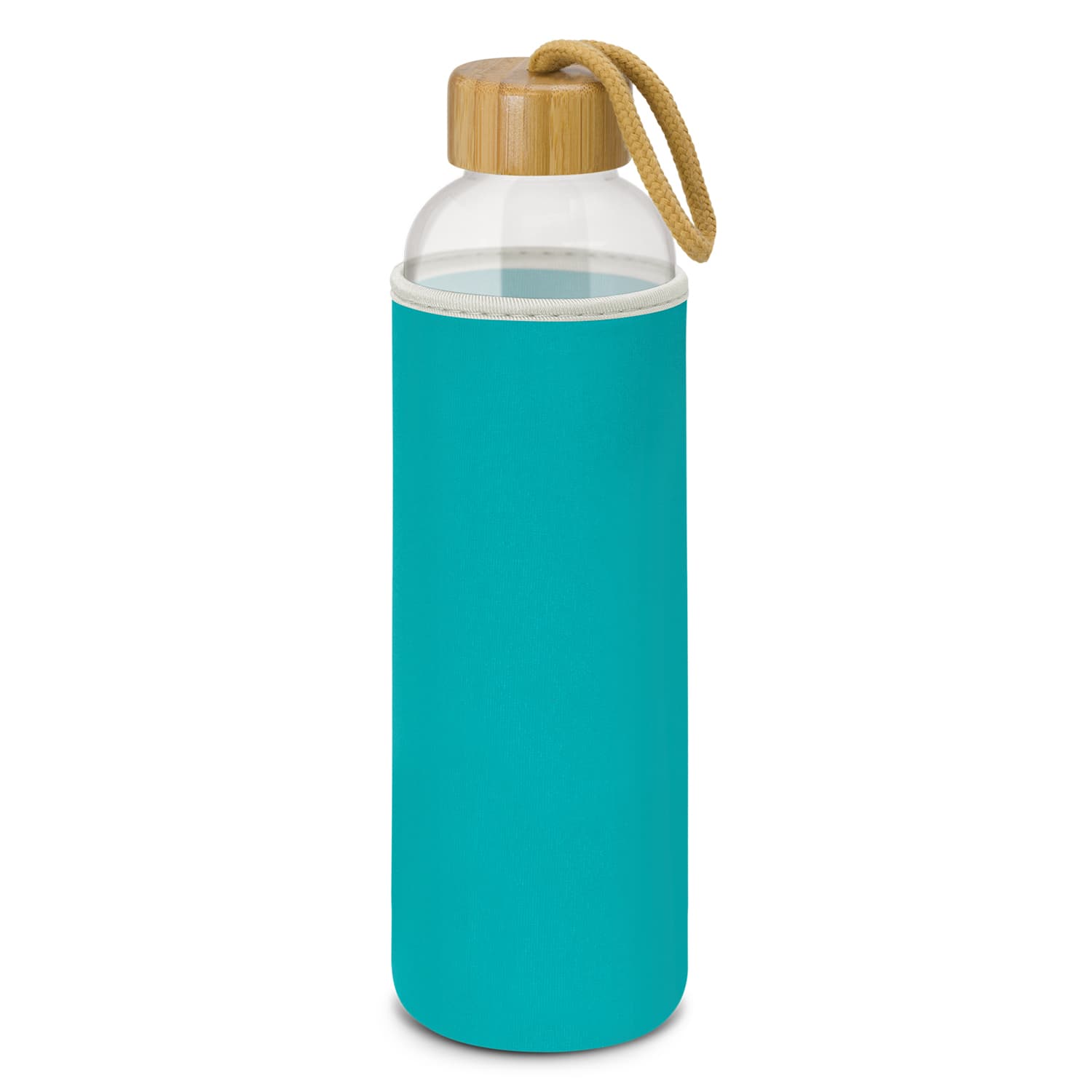 Sophisticated 600ml borosilicate glass drink bottle which has a soft insulating neoprene sleeve that keeps drinks cool for longer. It has a trendy screw on bamboo lid with a matching braided carry handle. Borosilicate is a lightweight glass that is exceptionally strong and shatter-resistant. Glass is a natural choice for a clean, pure taste and is a safe and reusable plastic alternative. Eden is not intended to be used with carbonated or hot liquids. Bamboo is a natural material which produces unavoidable variances in the grain pattern, colour and branding. This product is not dishwasher safe and handwashing is recommended.