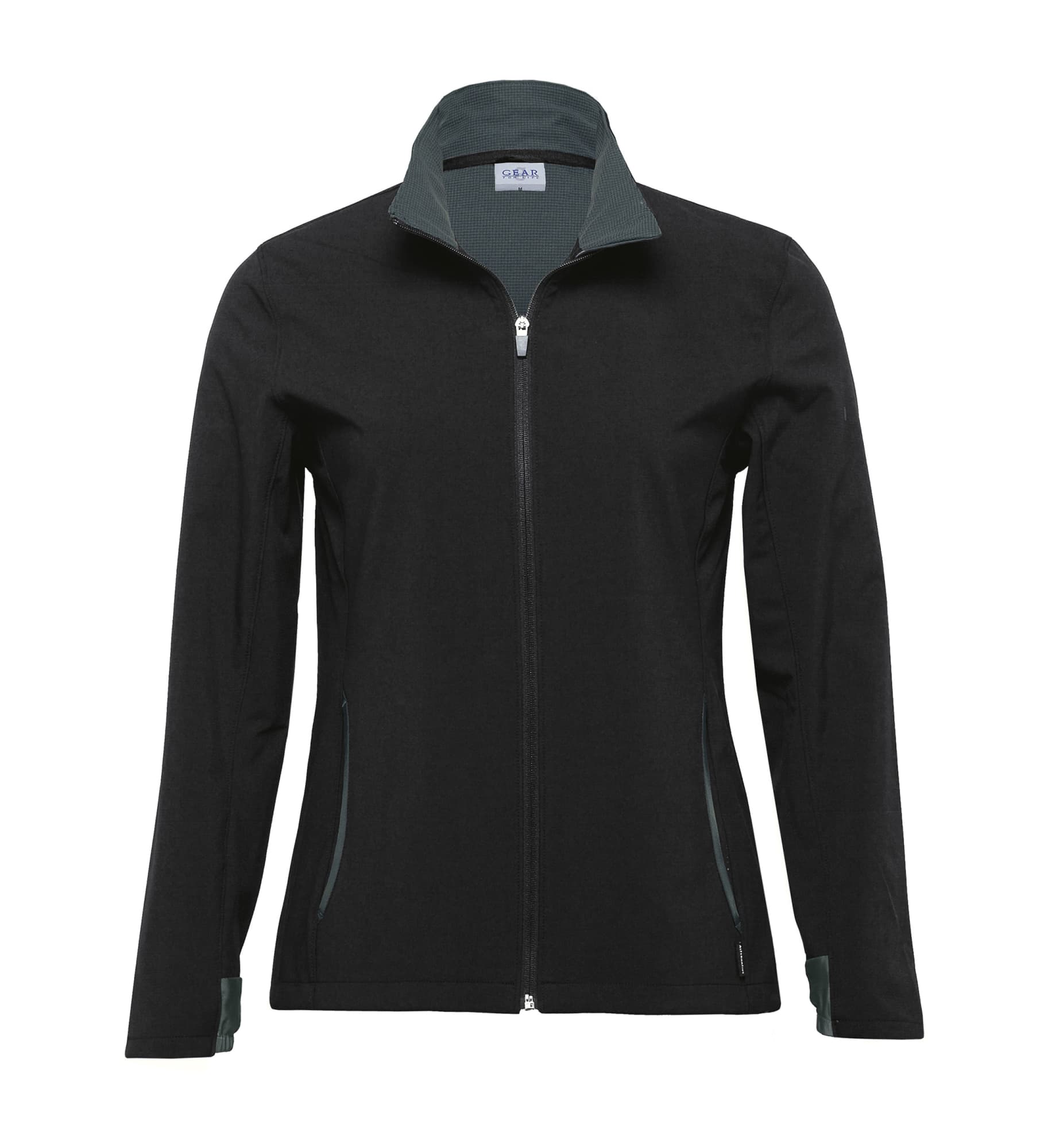 96% polyester 4% elastane softshell bonded with anti-pill microfleece|Wind resistant|breathable|showerproof|water repellant rating 5000mm|Tapered fit|Two way stretch for comfort|High-zip plaquet with rubber puller|Top stitch detailing|Contrast elastane detail on cuffs|Two zippered side pockets