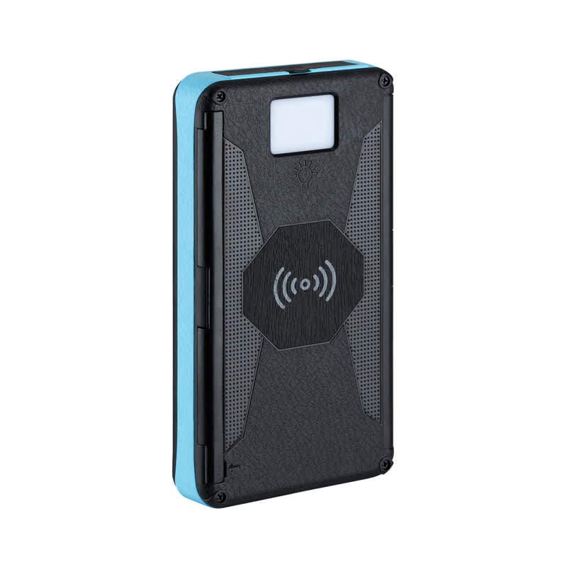 Designed with adventure in mind, the Europa shockproof power bank is powered by an 8000 mAh, A-Grade Lithium-Polymer battery. It includes a backup solar panel for those long hikes and provides both dual cable and wireless charging options. Comes with a bright torch. Suitable for charging any 5volt device by charge cable it is also compatible with any smartphone meeting the Qi wireless charging standard including iPhone 11 and Samsung S20. The Europa power bank is complete with output voltage protection and Foreign Object Detection to prevent overcharging. Includes a micro USB charge cable and user manual. Material: PC, Silicone case.