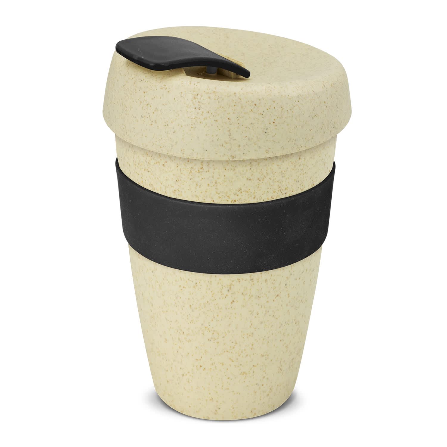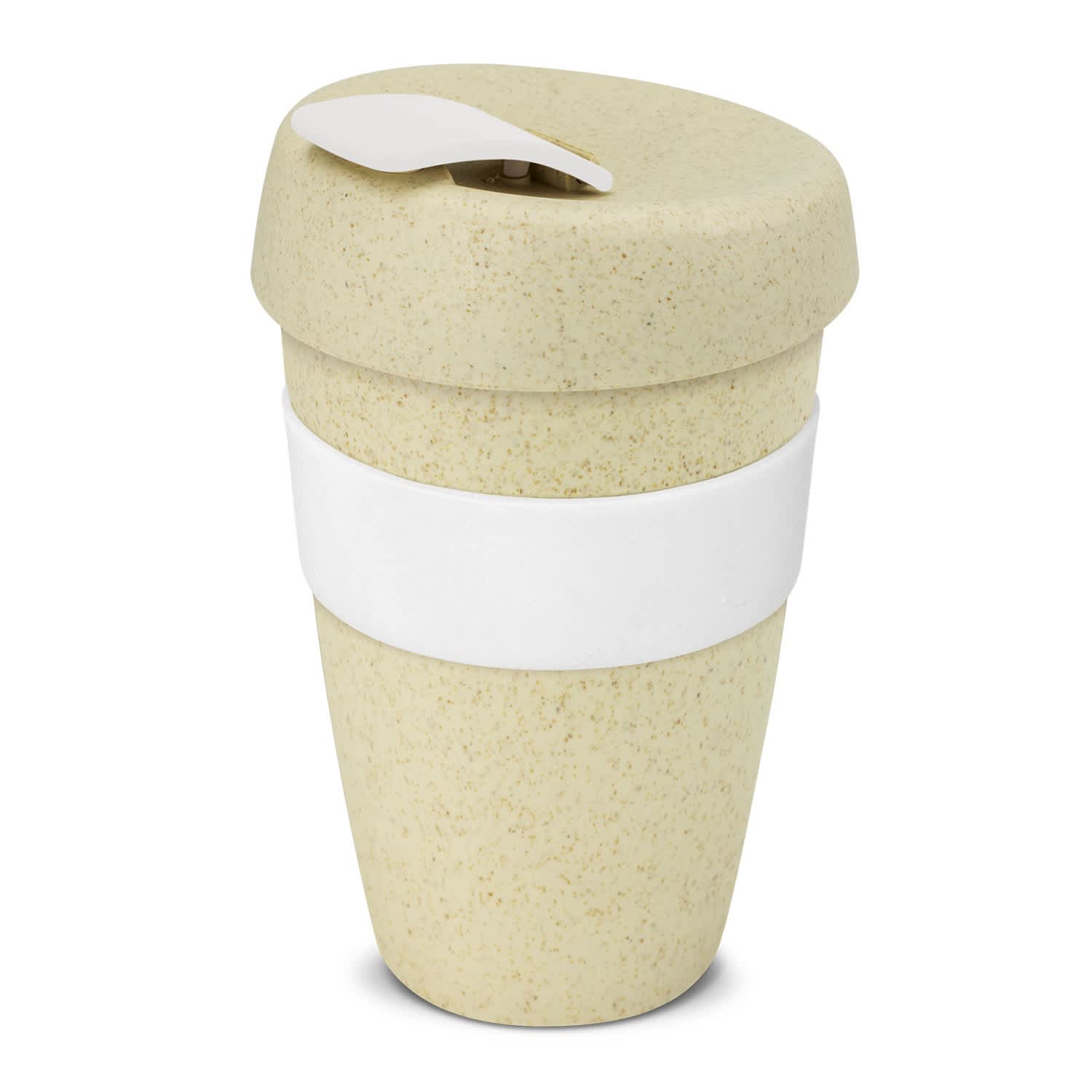 * 480ml reusable coffee cup made from BPA-free polypropylene and natural rice husk fibre