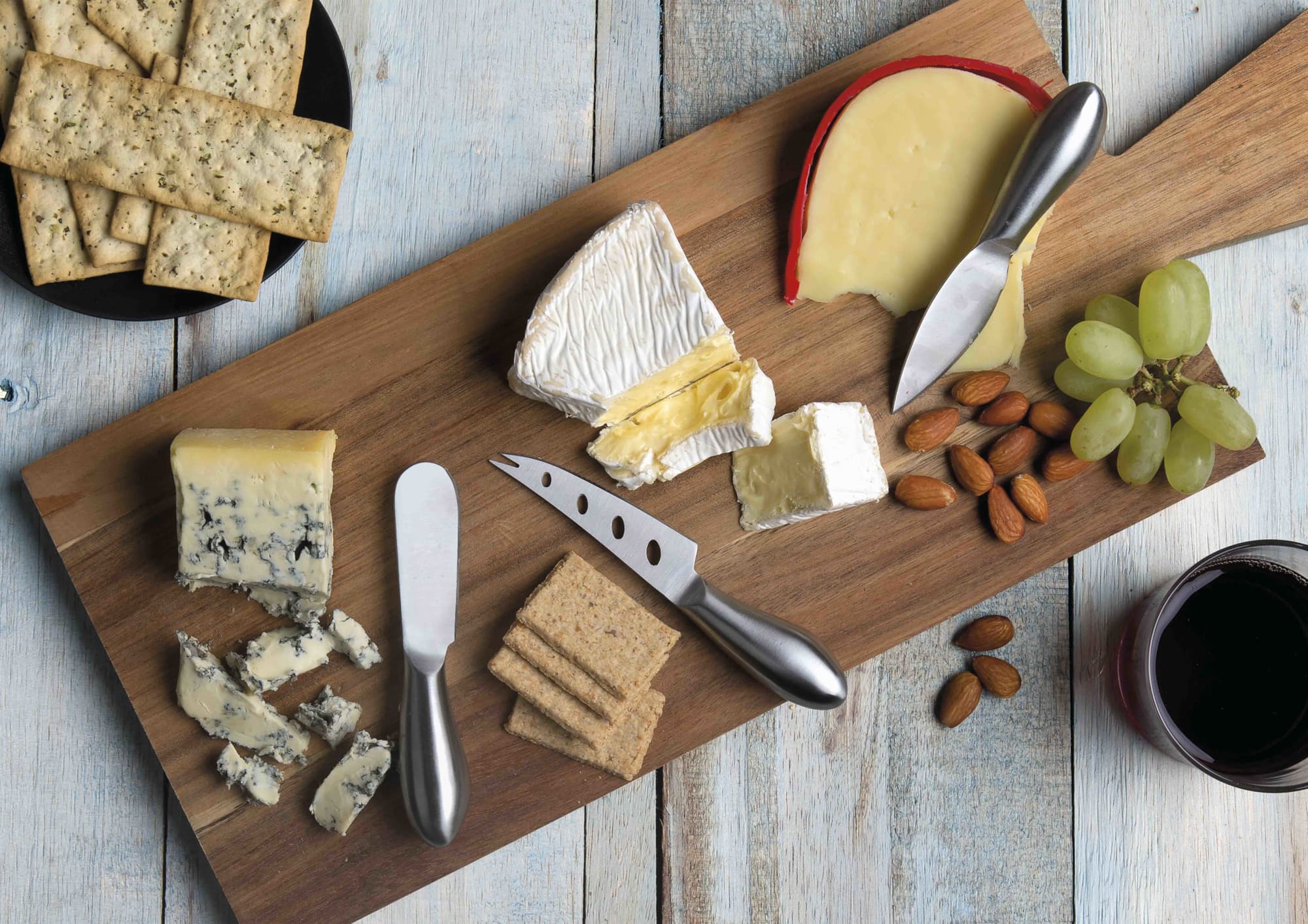 6-pcs Stainless steel cheese knife set|Includes: 15cm Open blade knife, 13cm flat cheese knife, cheese fork, plane knife, 13.5cm heart knife and spreader knife|Supplied: in a black po ‘di fame two part presentation box