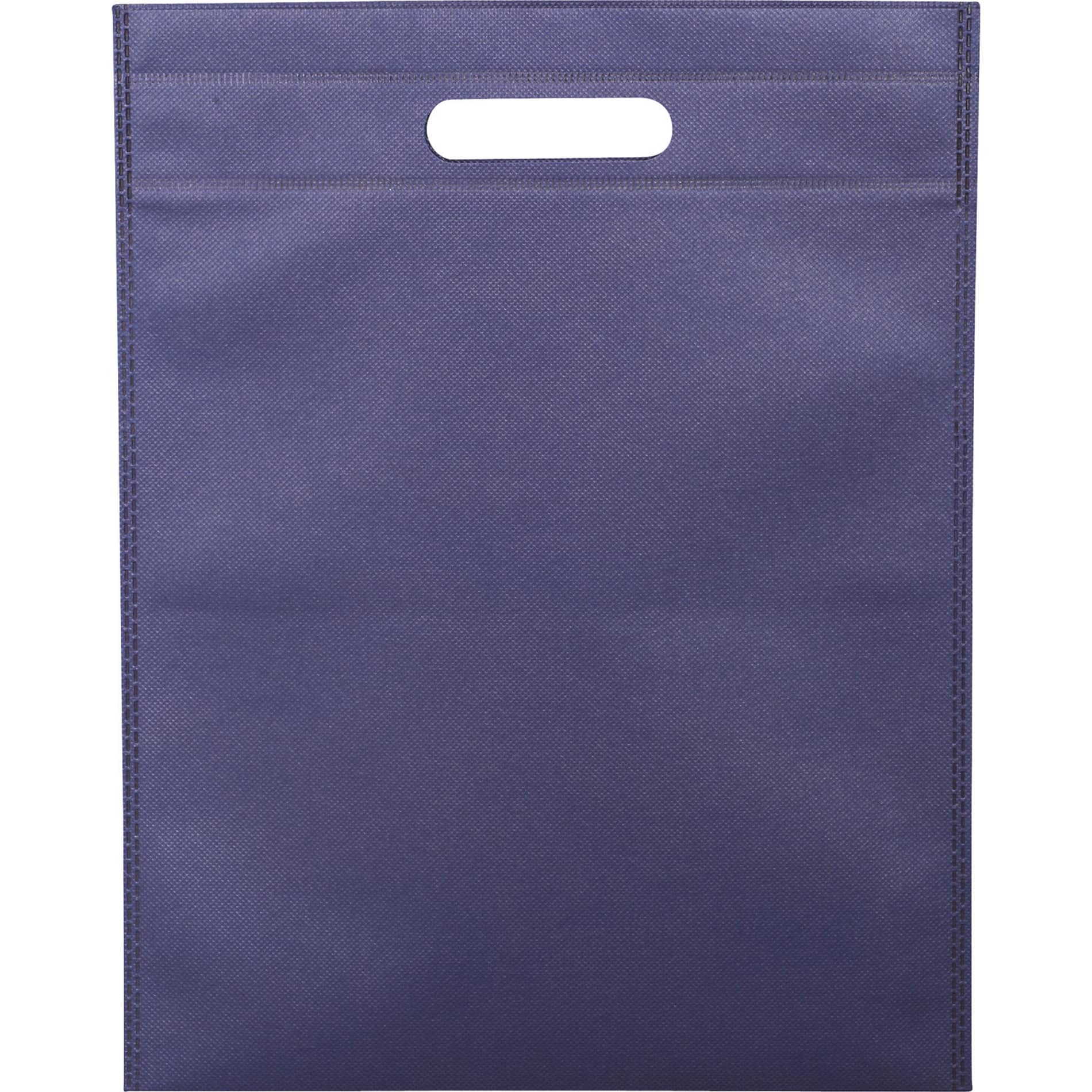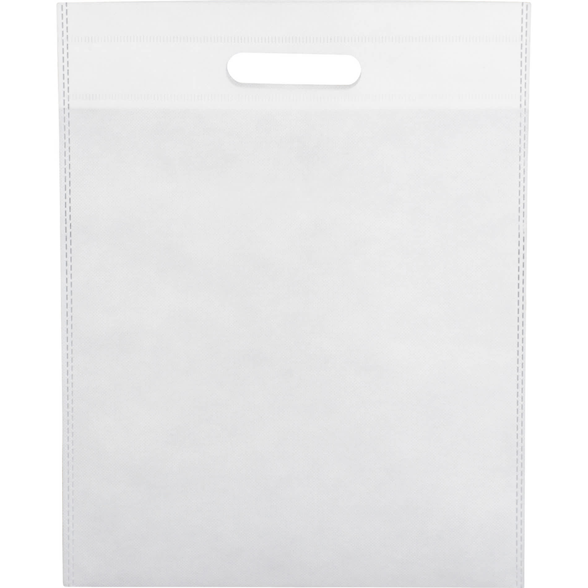 Open main compartment. Die-cut handle. Heat-sealed construction with slim design. Reusable and a great alternative to plastic bags or for tradeshows and conventions.