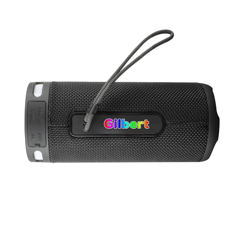 The Gilbert Bluetooth speaker combines Surround Sound and deep base tones with a 360° Lightshow to stimulate your sensors. Featuring 7 LED light modes that change with the music and a 1500 mAh battery, the Gilbert provides a 10 Watt output and 8-12 hours of sound. At the same time, its True Wireless Technology allows you to pair two separate speakers to your device while supporting USB, TF card and Auxillary inputs. Includes a Type-C charge cable, a hanging cord and a user manual. Materials: ABS, Nylon.