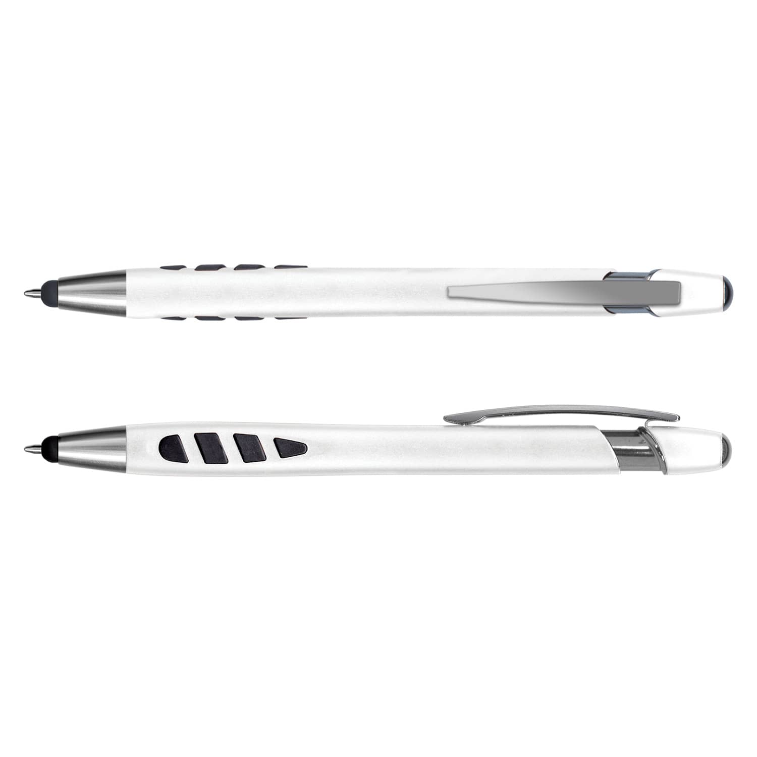 Retractable plastic ballpoint pen with a metallic barrel and soft rubber inserts in the grip. It has shiny chrome trim, a stylus, and a black refill with 1200 metres of German manufactured Dokumental ink. Havana Stylus can be presented in an optional pen sleeve.