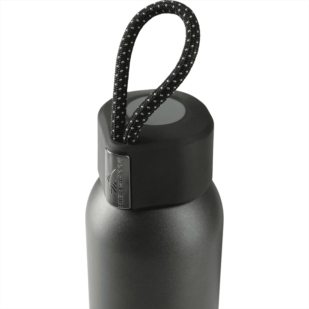| Features | Built-in comfort paracord carry handle. High Sierra® branding laser etched on bottle and molded into the chrome plate on lid. 600ml capacity. |