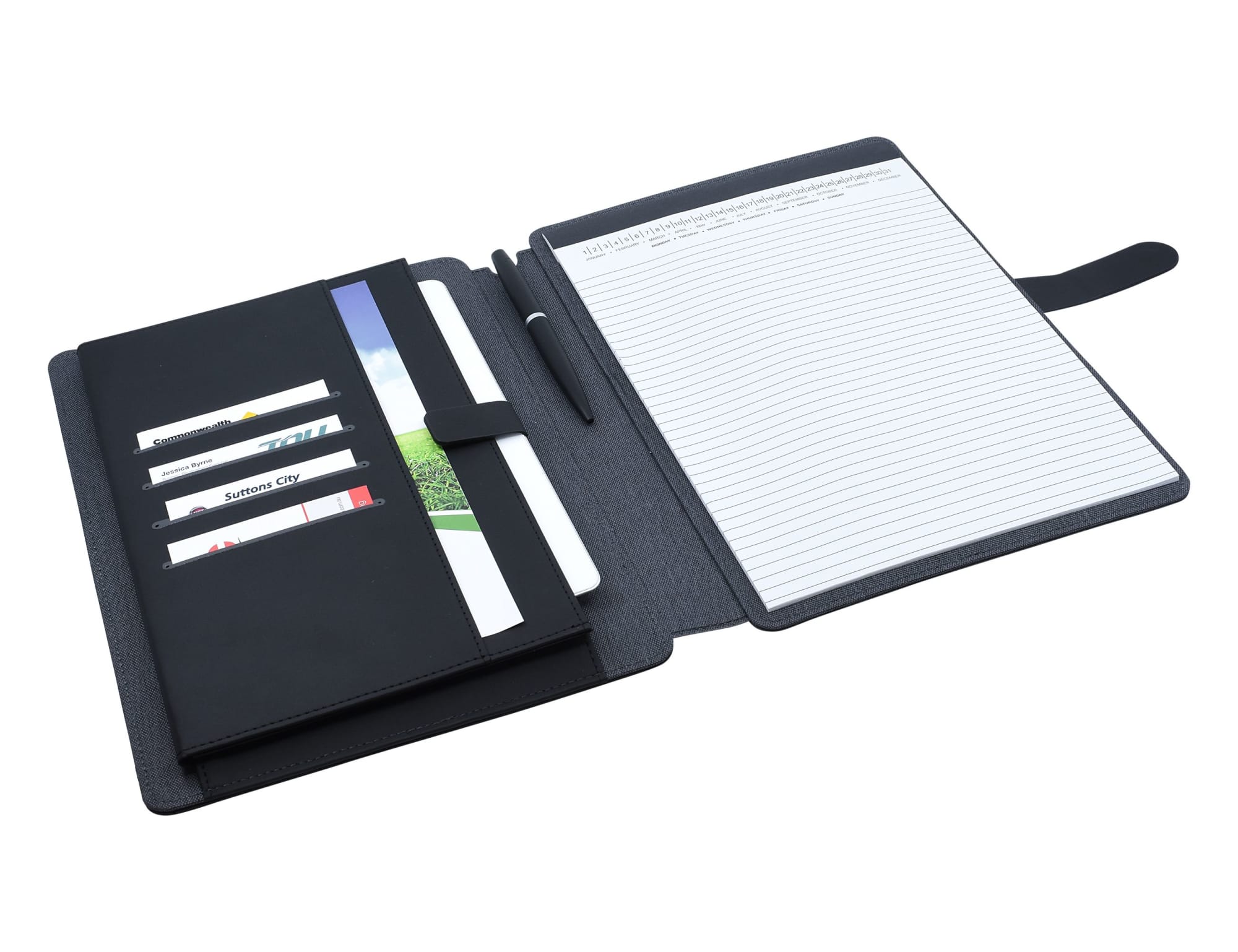 Impact A4 Portfolio, as the name suggests is designed to make maximum impact while keeping all your possessions safe and secure. This on-trend portfolio features a padded two-tone outer cover, a secure inner pocket to fit an iPad, a vertical document pocket, business card slots, pen recess and magnetic closure. An A4 ruled notepad is also included (accessories not included).
