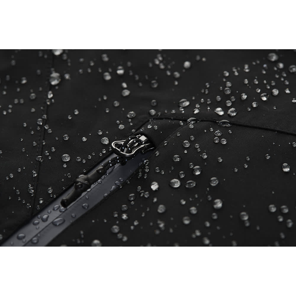 | Features | Centre front exposed contrast waterproof zipper, interior zipper flap with chin guard, lower exposed contrast waterproof zipper pockets, interior media pocket, hood with elastic drawcord and exterior cordlocks, adjustable laminated cuff tabs with hook and loop closure, elastic drawcord at hem with interior cordlocks, dropped back hem, lower pocket hem cinch access, easy grip zipper pulls, heat transfer main label for tagless comfort, interior media exit port, fully seam sealed, articulated elbows, ergonomic sleeves, zipper garage pocket feature, laminated peak. |
