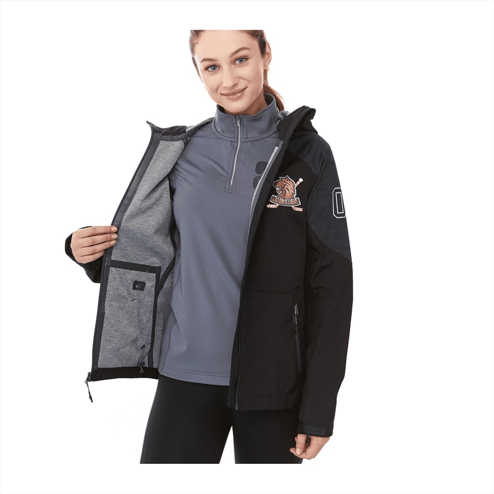 | Features | Centre front exposed contrast waterproof zipper, interior zipper flap with chin guard, lower exposed contrast waterproof zipper pockets. interior media pocket, hood with elastic drawcord and exterior cordlocks, adjustable laminated cuff tabs with hook and loop closure, elastic drawcord at hem with interior cordlocks, dropped back hem, lower pocket hem cinch access, easy grip zipper pulls, heat transfer main label for tagless comfort, interior media exit port, fully seam sealed, articulated elbows, ergonomic sleeves, zipper garage pocket feature, shaped seams and tapered waist for flattering fit, laminated peak. |