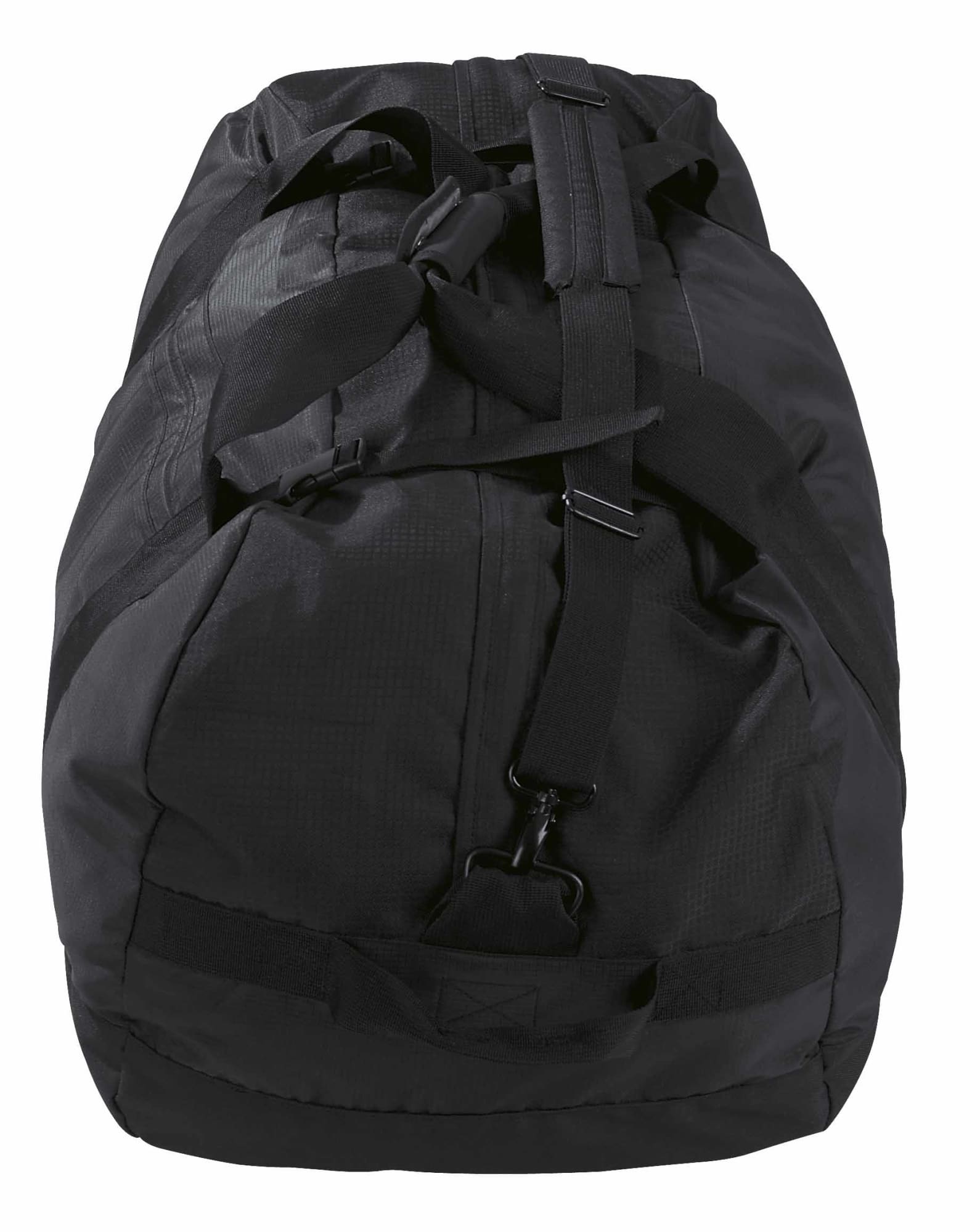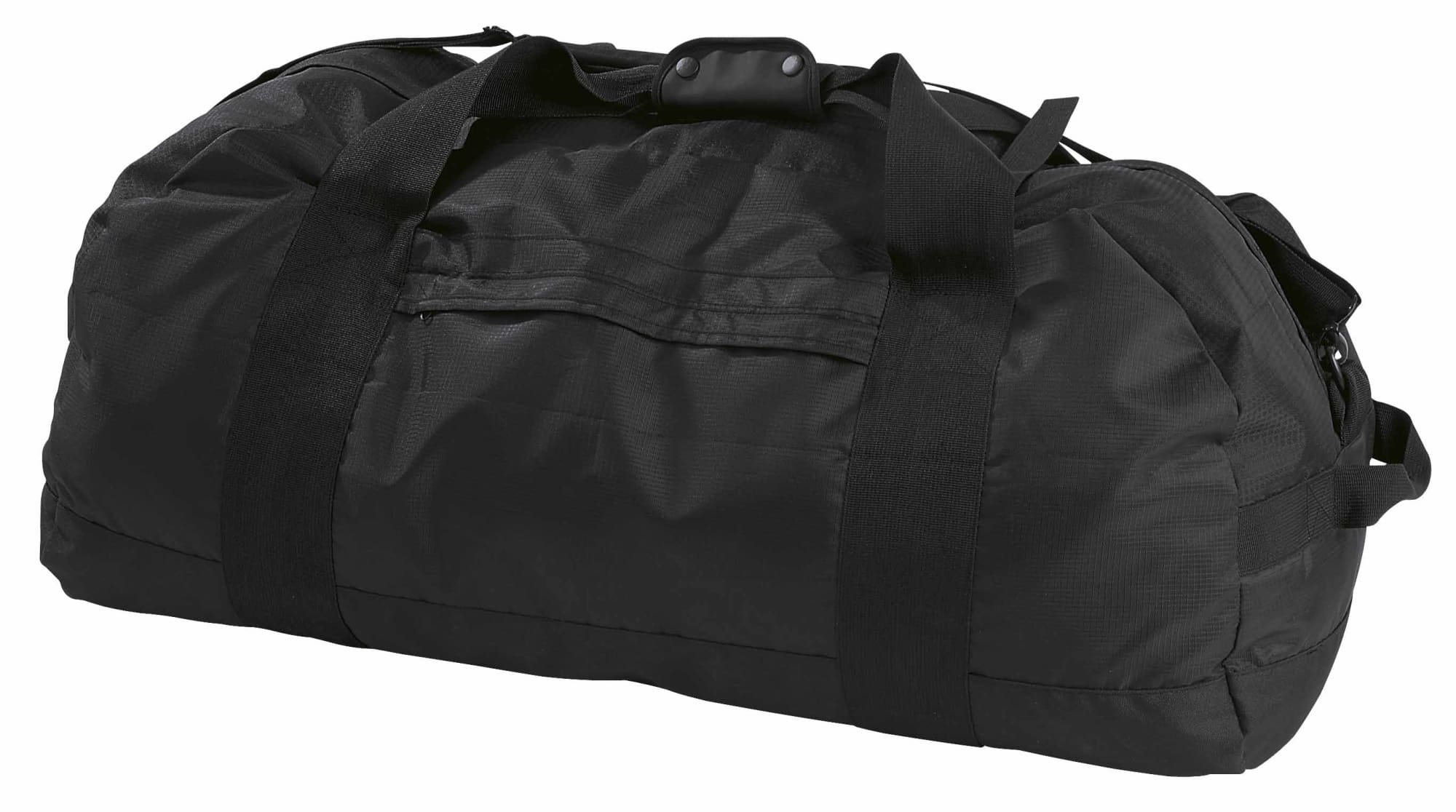 Reinforced ripstop nylon and 600D polyester with latex rubber backing|Huge end to end zippered main compartment with high grade zipper and covered storm flap|Dual top compression straps|Oversized panel webbing for extra strength and durability|Zippered side accessory pocket|Reinforced end quick grab handles|Detachable/adjustable padded shoulder straps|Reusable stuff pouch for bag storage as well as internal packing accessory|Heavy duty oversized zippers and accessories|Capacity: 102 Litres