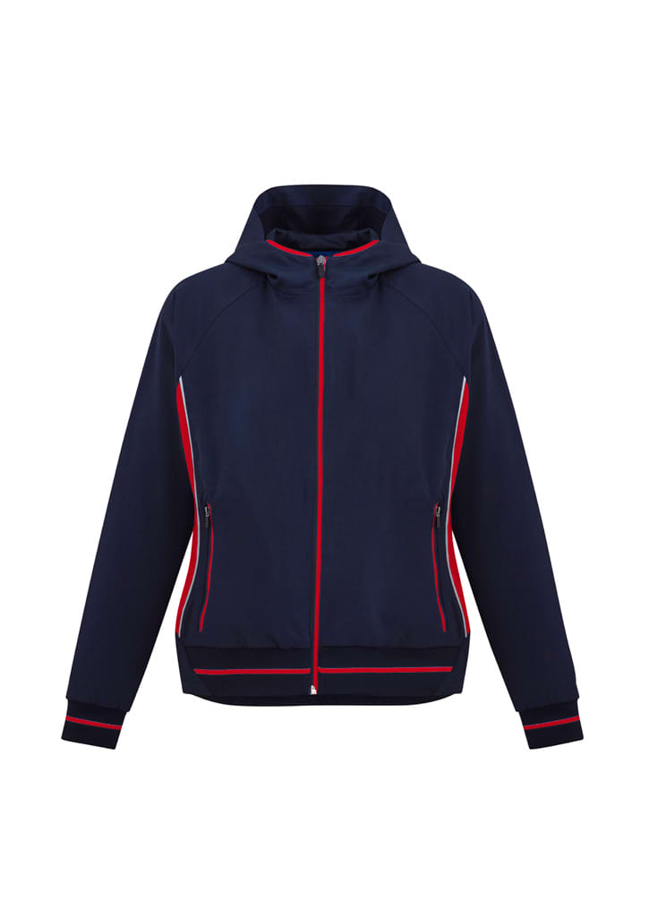 Features: Attached hood, two-tone zip, reflective piping for visibility