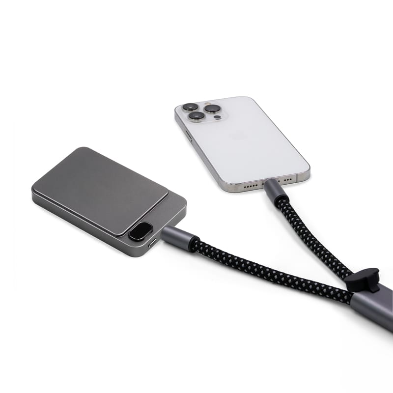 SpecificationsUSB Type-C to Type-C connectors, 60W fast charge and USB 2.0 data transfer cable, 7mm (dia.) RPET cord, Open cord length (44cm max), Tested up to 8Kgs, Adjustable aluminium retainer, compatible with most phone cases.