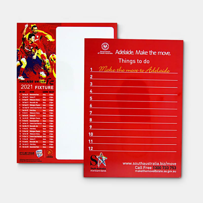 Please note you cannot print on the back. The imagery is to show two options of print on the front of the whiteboard.