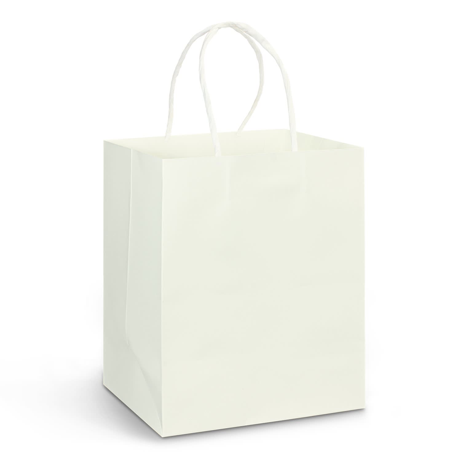Medium size paper carry bag with strong paper rope handles. It is manufactured from 190gsm kraft paper and can be branded with stunning edge-to-edge spot colour or full colour printing on all sides including the base. A production lead time of 35 working days applies to this product by air freight and larger orders can be sea freighted on request to reduce the freight cost.
