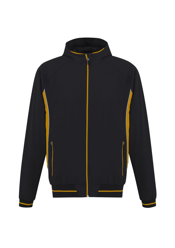 Features: Attached hood, two-tone zip, reflective piping for visibility