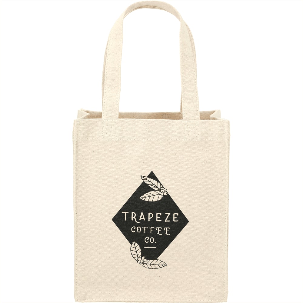 The Mini 10oz Cotton Gift Tote makes the perfect give giving accessory any season. This tote is the perfect alternative to plastic bags. Capacity of approximately 5L.