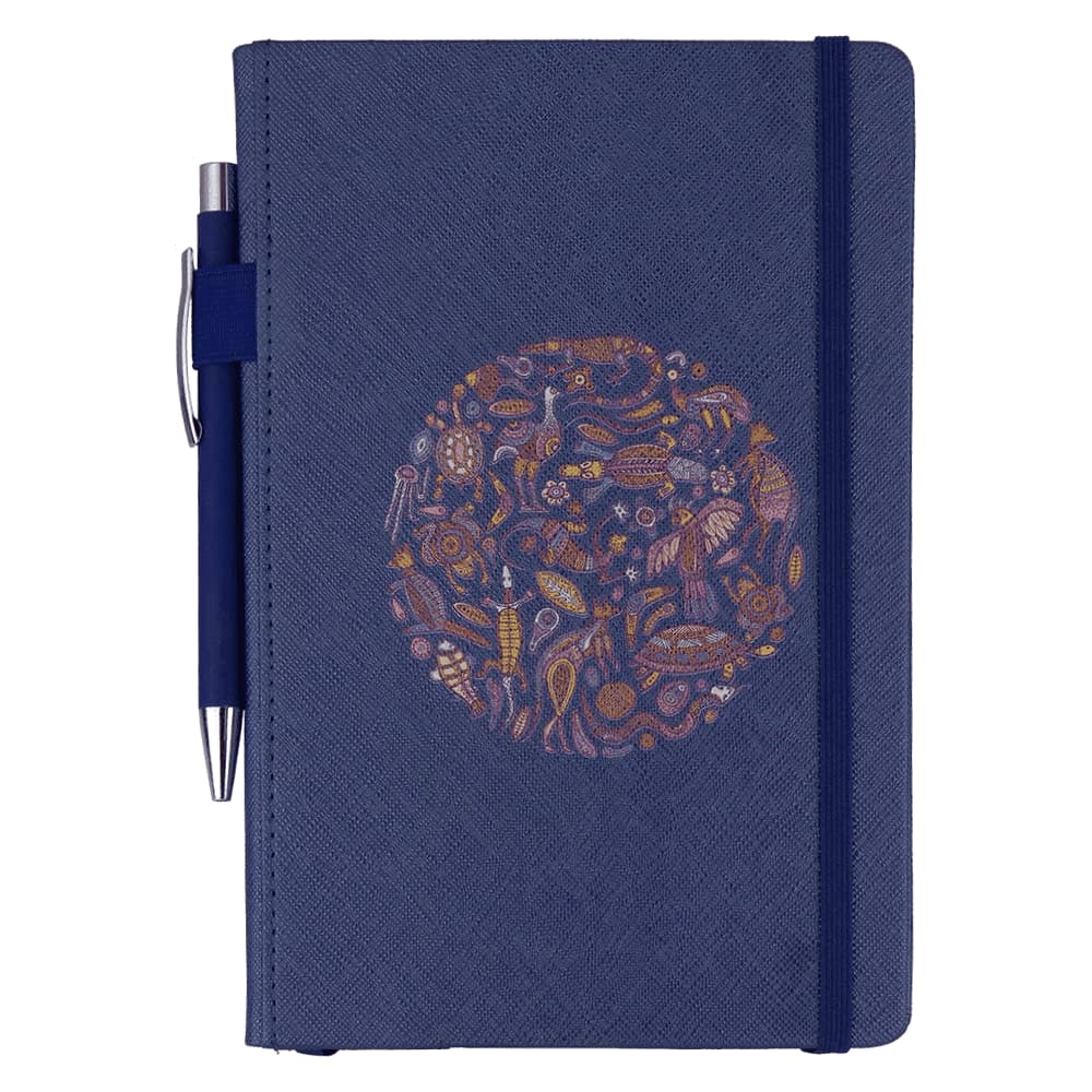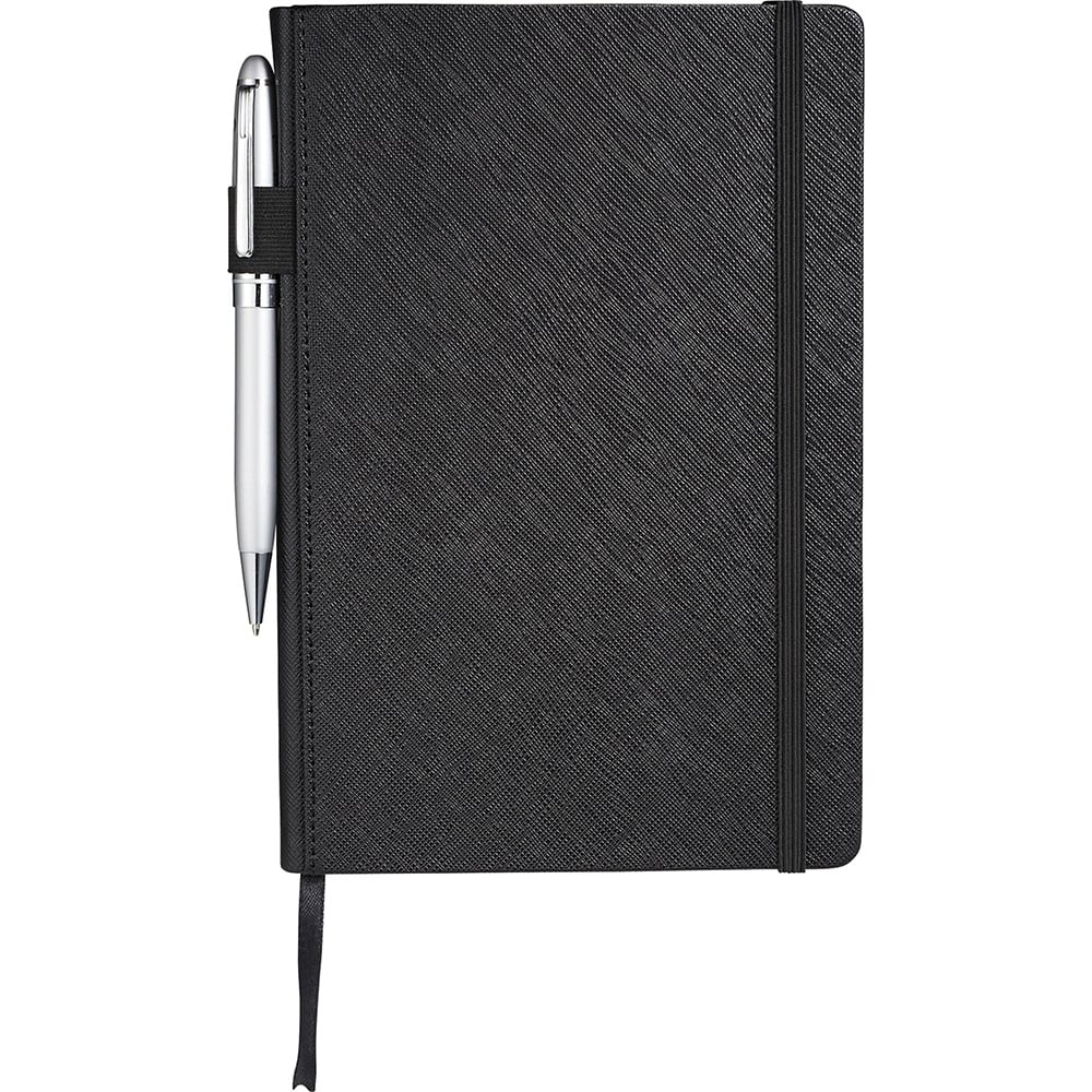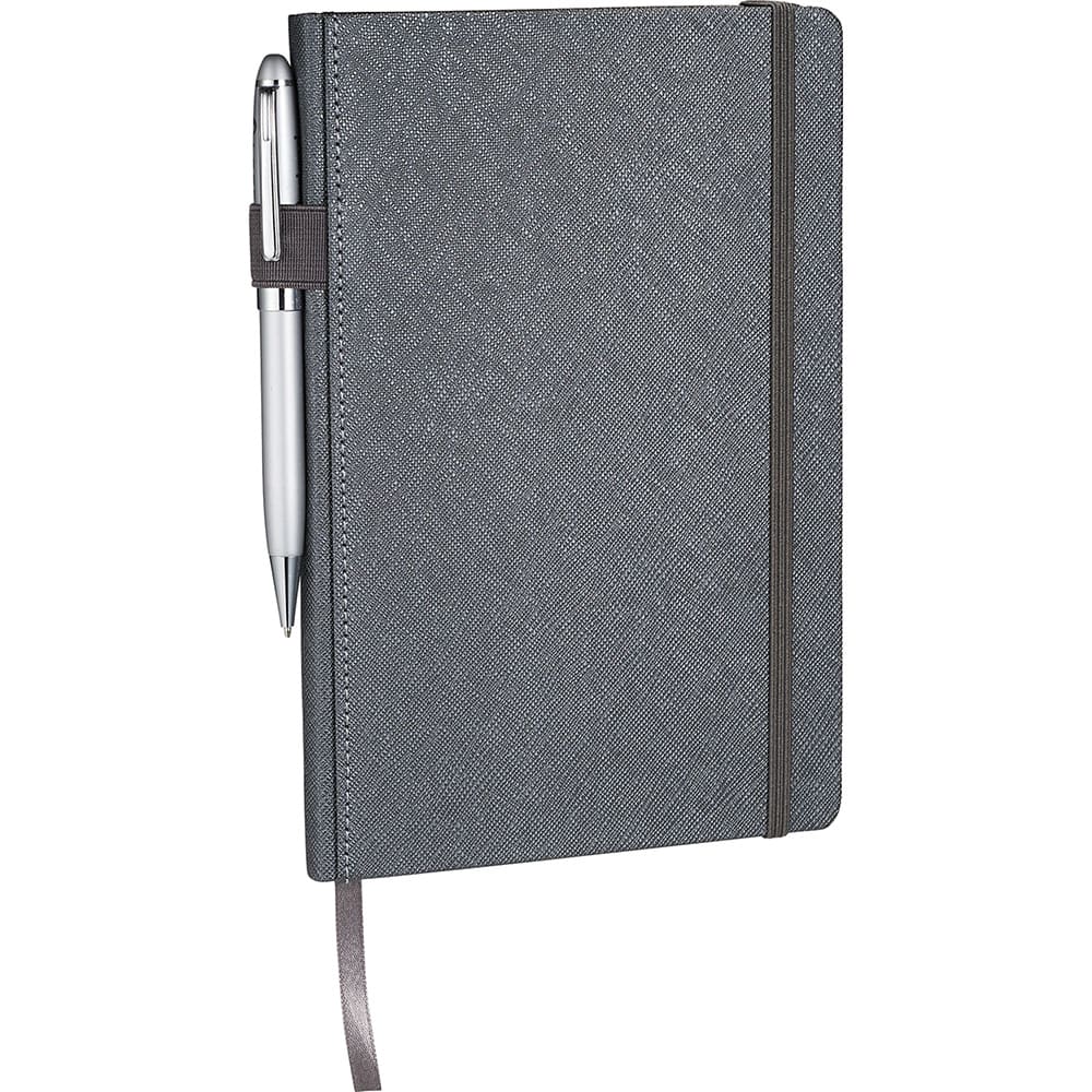 Premium, textured hard cover bound journal. Elastic pen loop on spine. Elastic closure and ribbon page marker. Pen not included. Available in 3 colours.