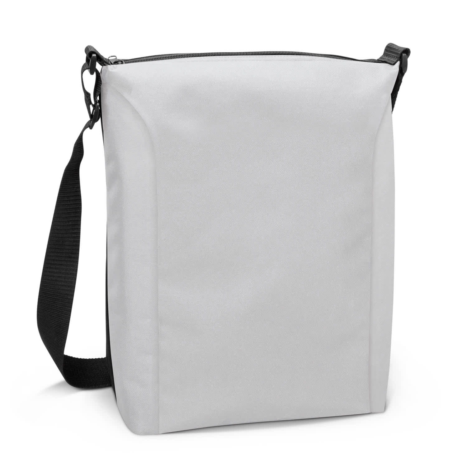 Unique satchel style conference or event bag that can be repurposed as a 10L cooler bag. This radical dual use bag has increased sustainability as it can be used for many years after the event. The front panel can be branded with stunning edge-to-edge full colour print and it has PE foam insulation encased in a water-resistant PEVA inner liner. Other features include a black zippered top closure and an adjustable woven shoulder strap. The side panels, base panel, back panel and woven shoulder strap are available in the choice of 10 standard colours which can be mixed and matched. The shoulder strap slider and connectors are black. A production lead time of 20 working days applies to this product by air freight and larger orders can be sea freighted on request to reduce the freight cost.