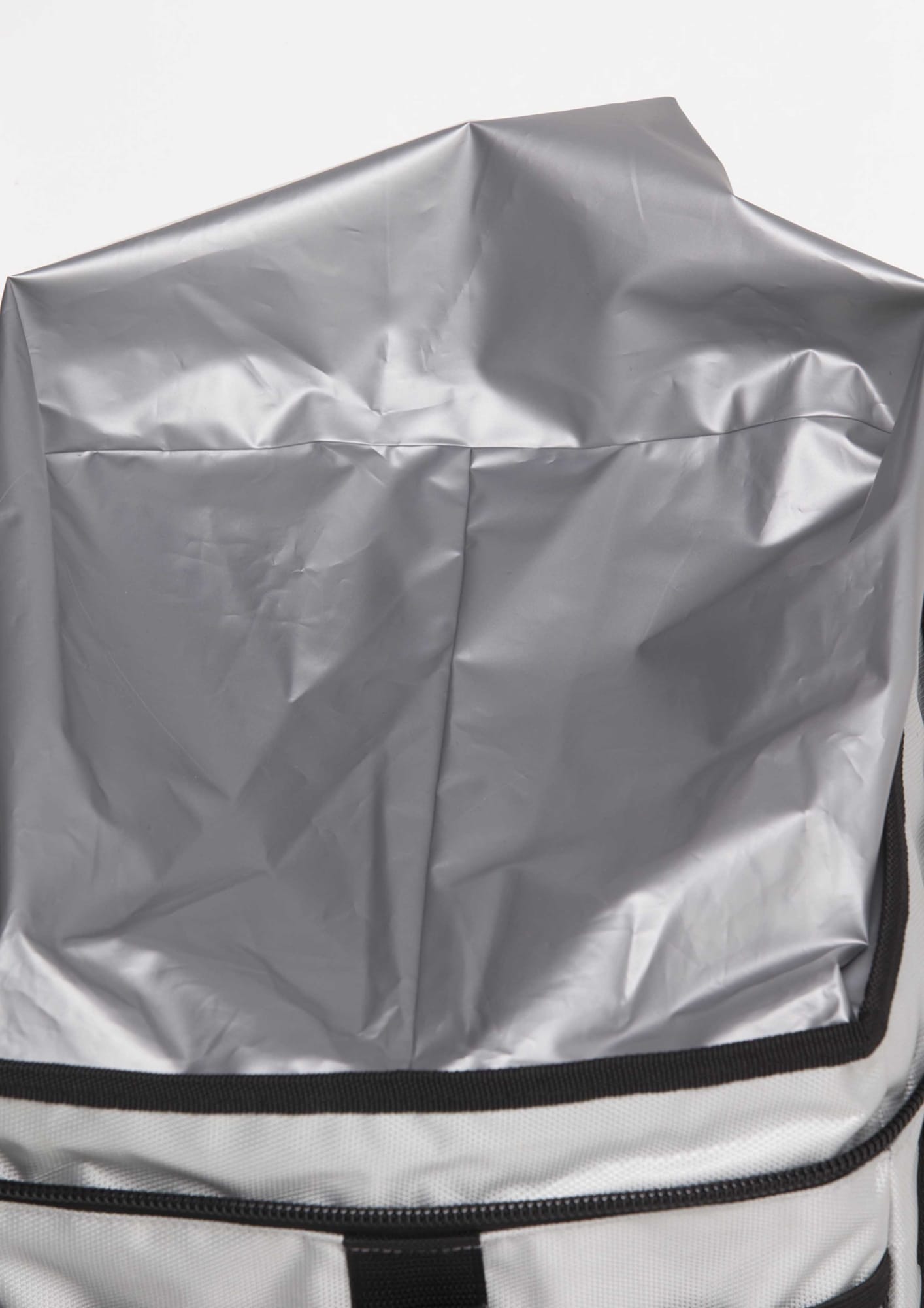 210D polyester with latex rubber backing|Heat sealed leak-proof PEVA Lining|Huge extra thick thermal insulated main cooler compartment keeps items cool for 2 days|Corrosion resistant zippers|Dual mesh side pockets|Stretch bungee cord system on lid|Detachable/adjustable shoulder strap|Velcro wrap carry handle for comfortable grip|Capacity: 28 Litres