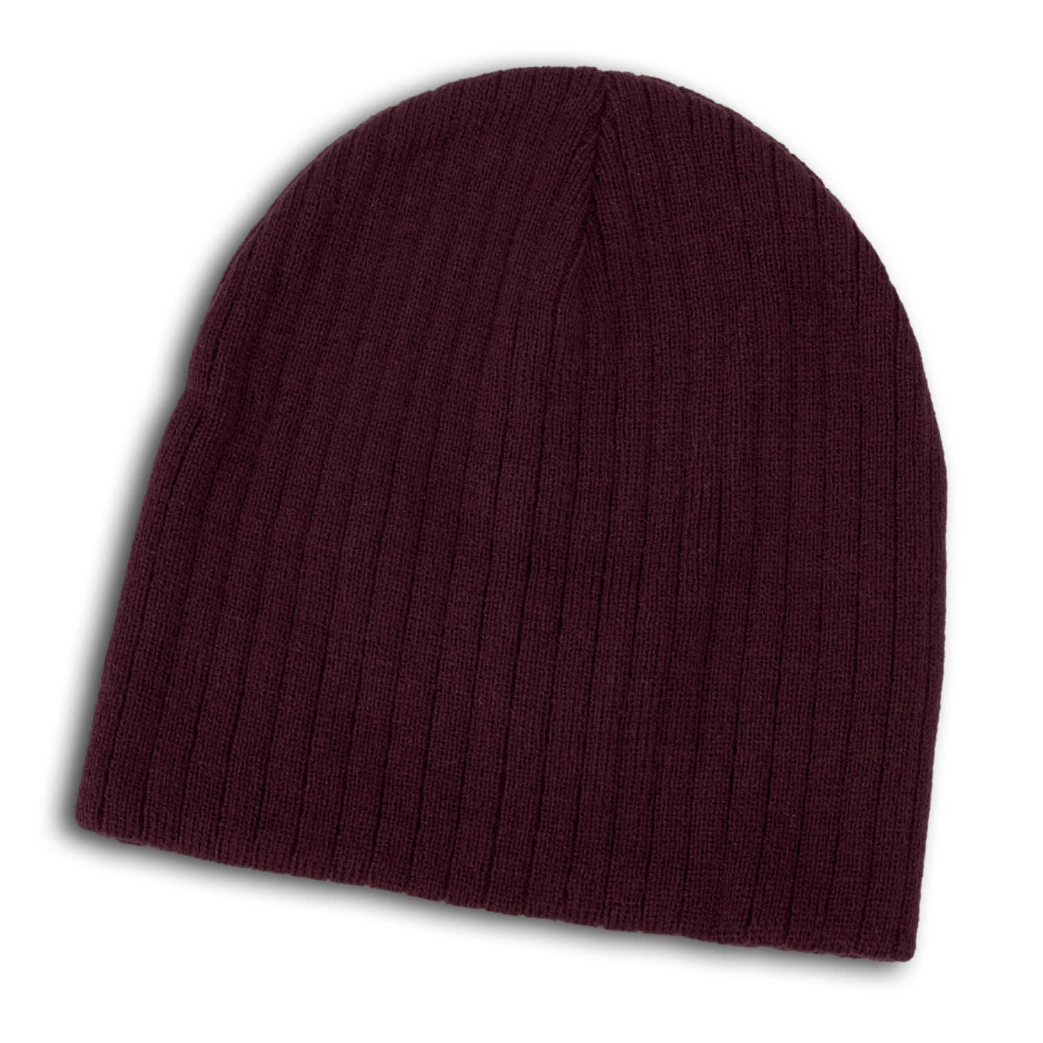 Stylish cable knit beanie made with acrylic yarn. It is available in one size which will fit most people.