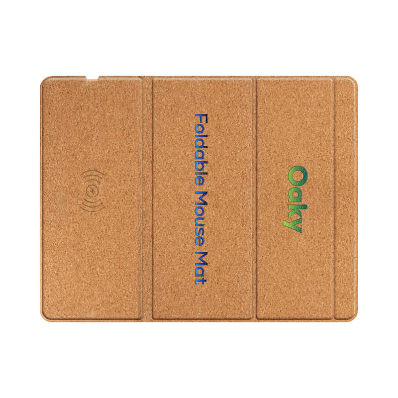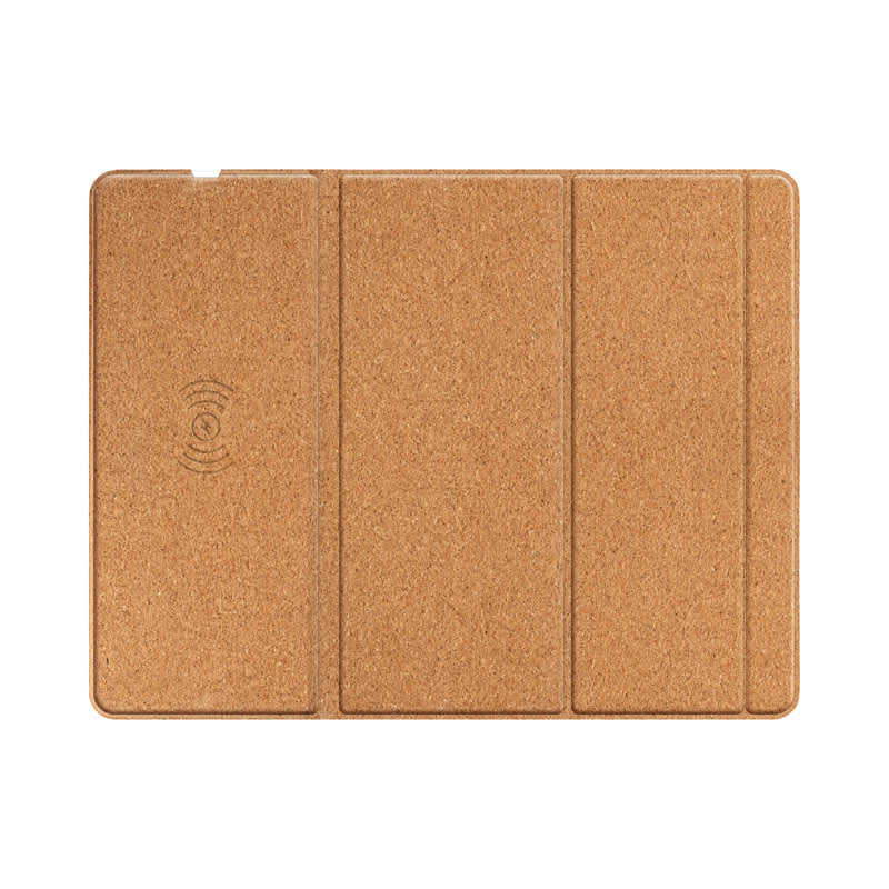 The Oaky Pro mouse pad merges a mouse pad with wireless charging technology, enabling you to use your mouse and charge your phone simultaneously. Made from biodegradable cork, the Oaky range of wireless chargers provides an environmentally friendly alternative. With its modern look and feel, this 15-watt wireless charger is compatible with any smartphone or device that meets the Qi wireless charging standard. This foldable mouse pad offers a landscape viewing angle while charging your phone, FOD protection, and an LED indicator. The Oaky Pro includes a Type-C charging cable and a user manual packaged in a recycled box. Material: Cork.