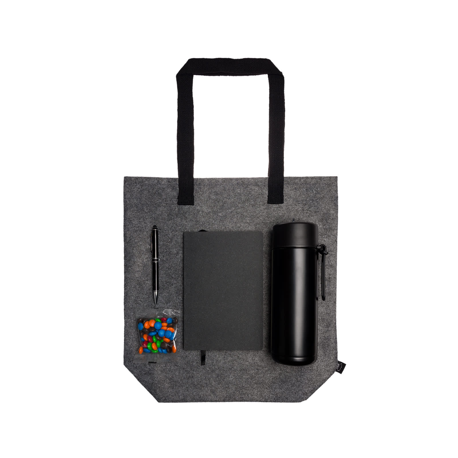| Materials | Montana RPET Gusset Tote Bag LL7041: 1mm thick RPET Felt, Polyester Handles; Astro Soft Cover Recycled Leather Notebook LL8541: Recycled Leather, Recycled Paper; Columbia Aluminium Pen LL3456: Aluminium; Zara 600ml Steel Bottle LL6947: 304 Grade Stainless Steel Outer, 201 Grade Stainless Steel Inner |