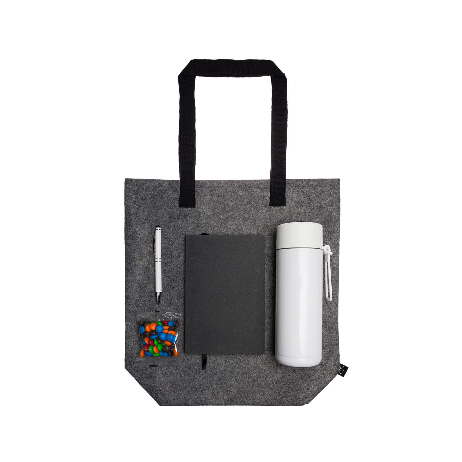 | Print Areas | Screen Print: Bag - 290 x 320mm (LxH), Notebook: 110 x 180mm (LxH), Drink Bottle: 200mm x 140mm (LxH), Pen: 30 x 20mm (LxH); Label: M&M's - 50 x 50mm (LxH); Digital Transfer: Bag (Small) - 140 x 45mm (WxH), Bag (Large) - 210 x 297mm (WxH); Digital Print: Front/Back of Notebook - 100 x 150mm (LxH) |